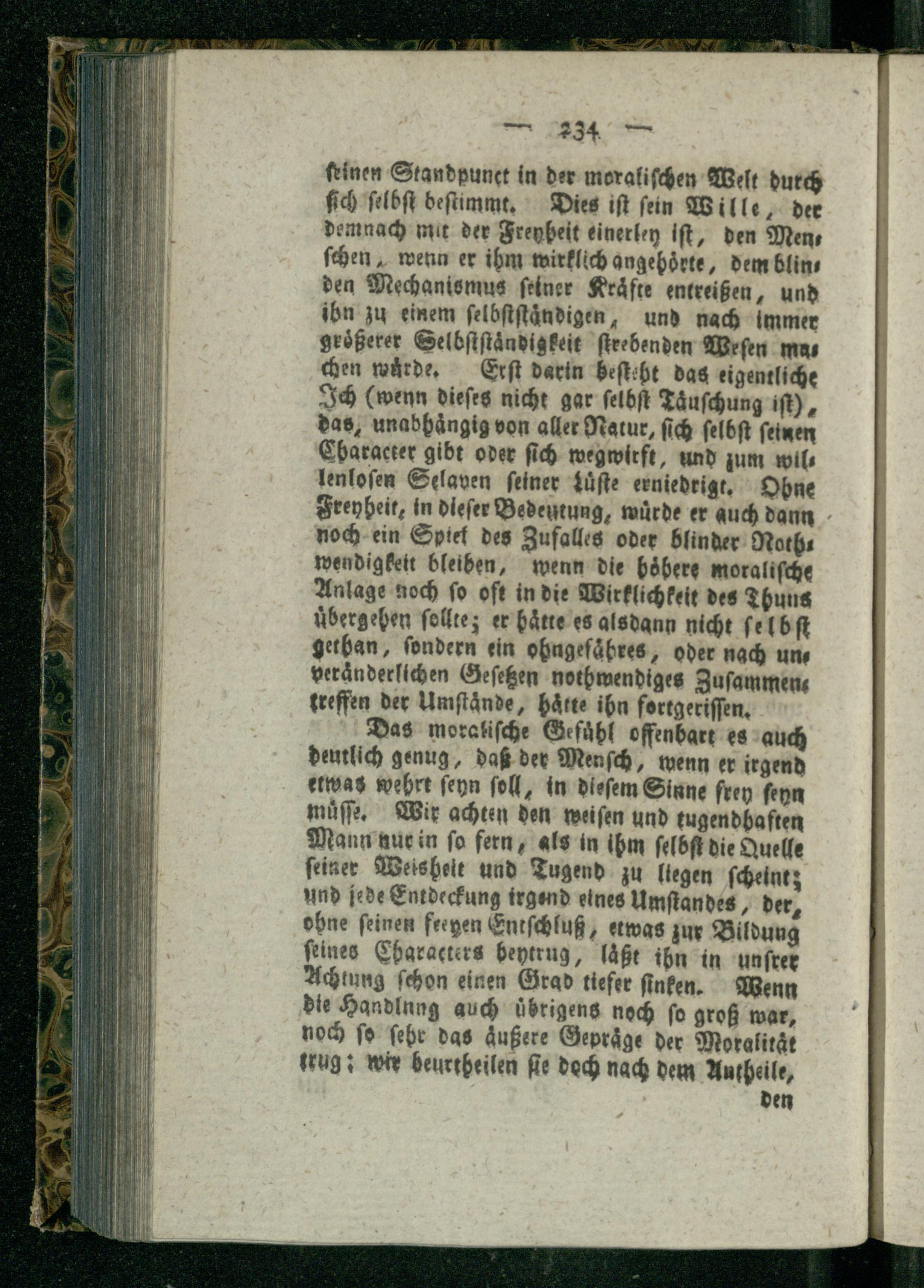 Achter Abschnitt. Von der Natur und dem hohen Wehrte einer sittlichen Denkungsart.