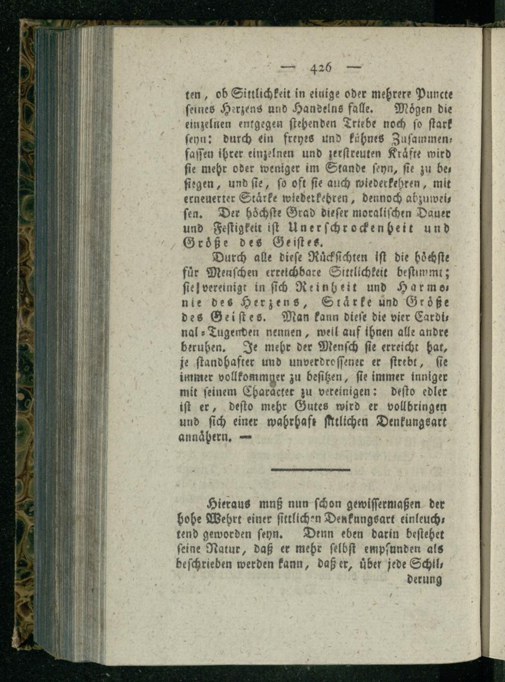Achter Abschnitt. Von der Natur und dem hohen Wehrte einer sittlichen Denkungsart.