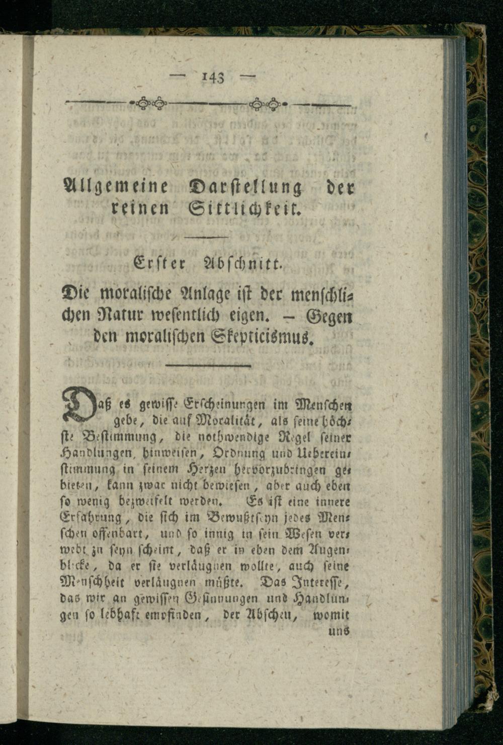 Erster Abschnitt. Die moralische Anlage ist der menschlichen Natur wesentlich eigen. - Gegen den moralischen Skepticismus.