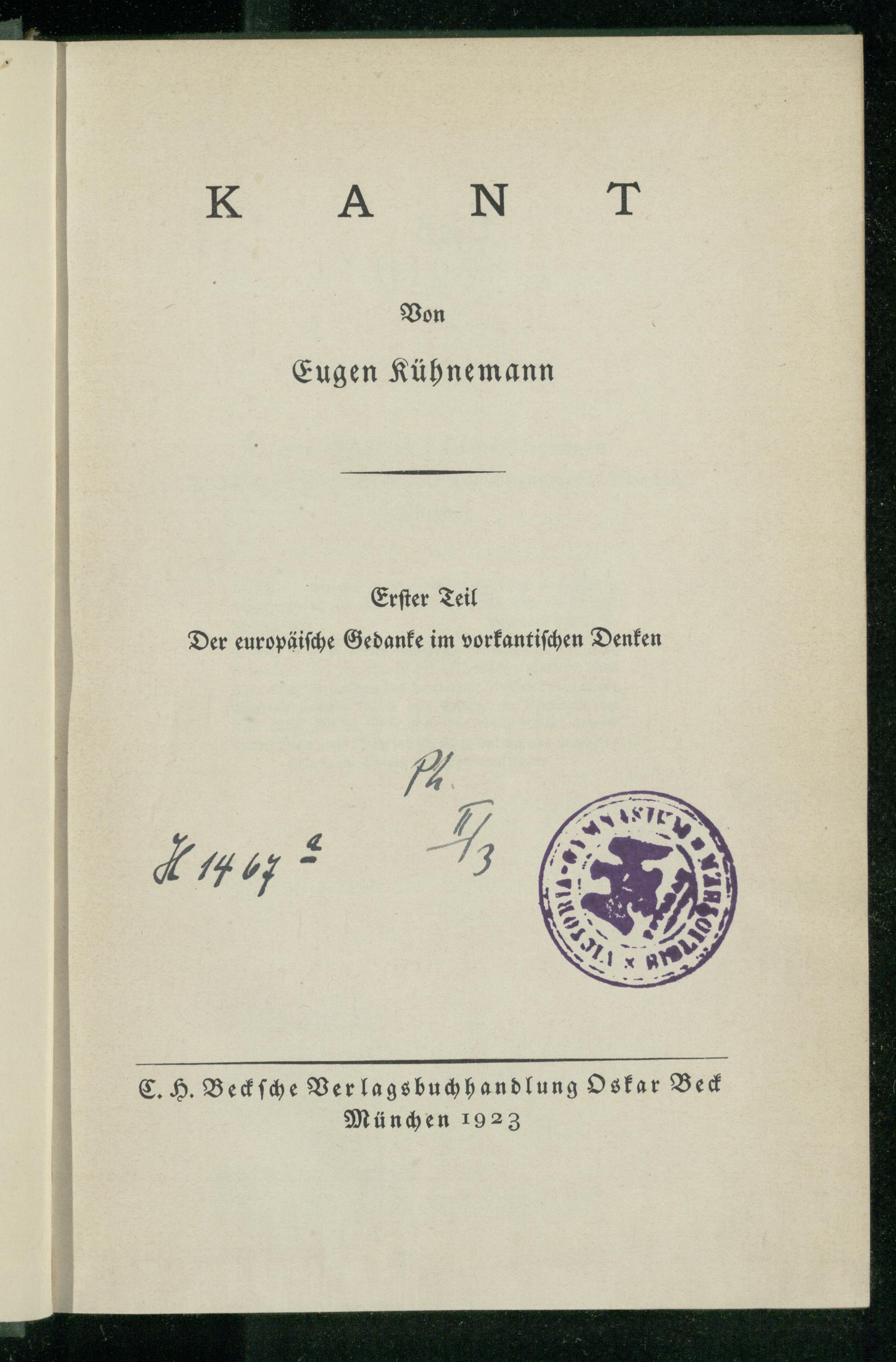 Teil 1 (1923) Der europäische Gedanke im vorkantischen Denken