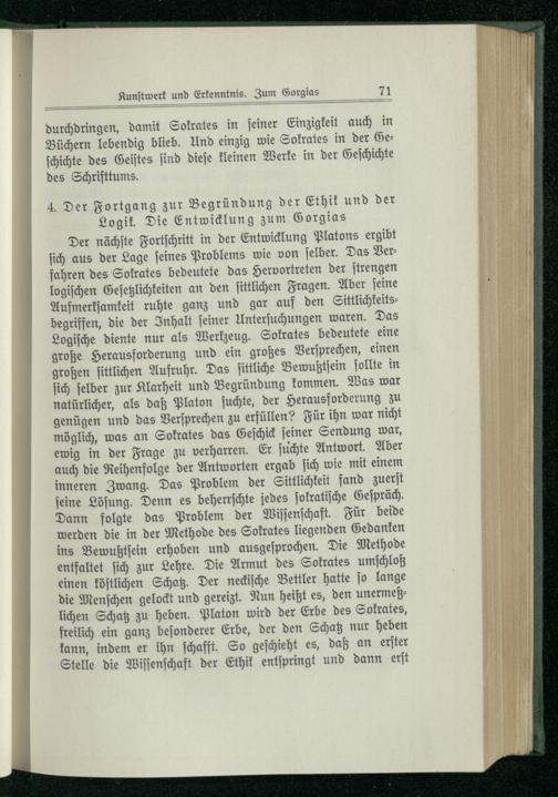 4. Der Fortgang zur Begrüßung der Ethik und der Logik. Die Entwicklung zum Gorgi...