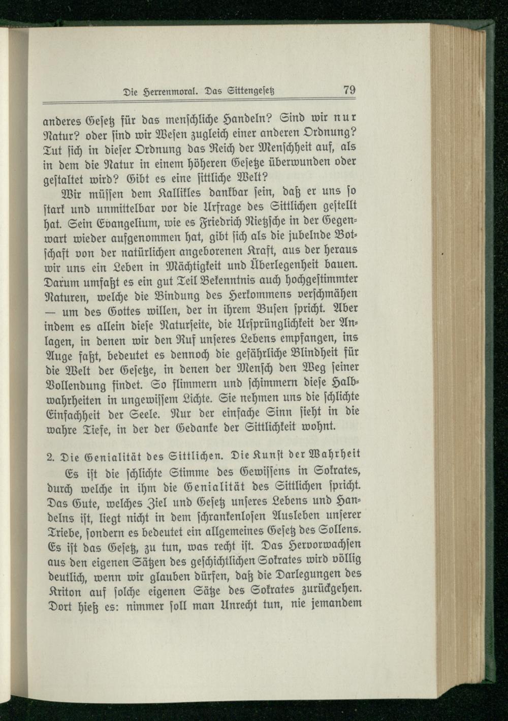 2. Die Genialität des Sittlichen. Die Kunst der Wahrheit.