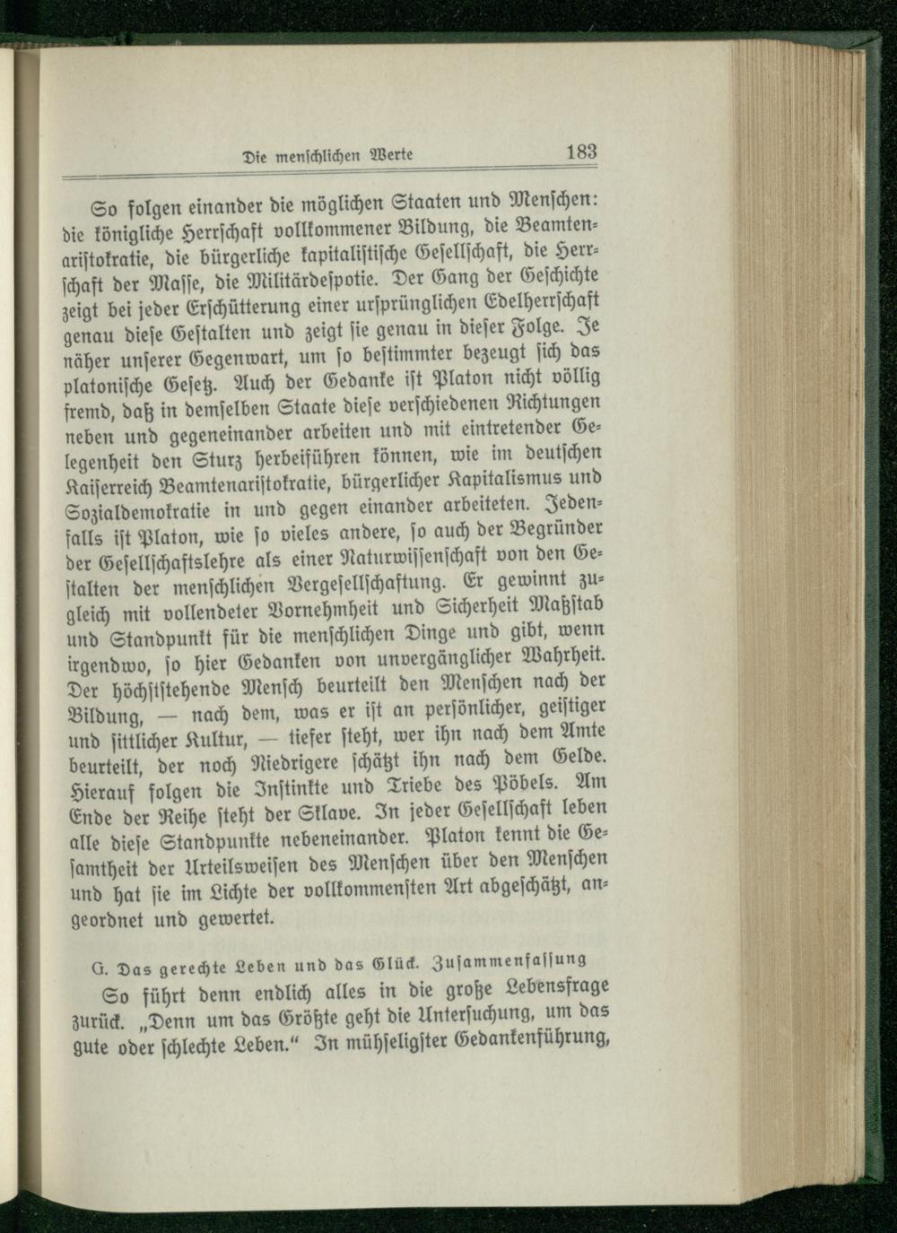 G. Das gerechte Leben und das Glück. Zusammenfassung.
