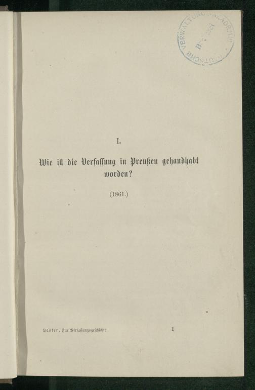 I. Wie ist die Verfassung in Preußen gehandhabt worden? (1861.)
