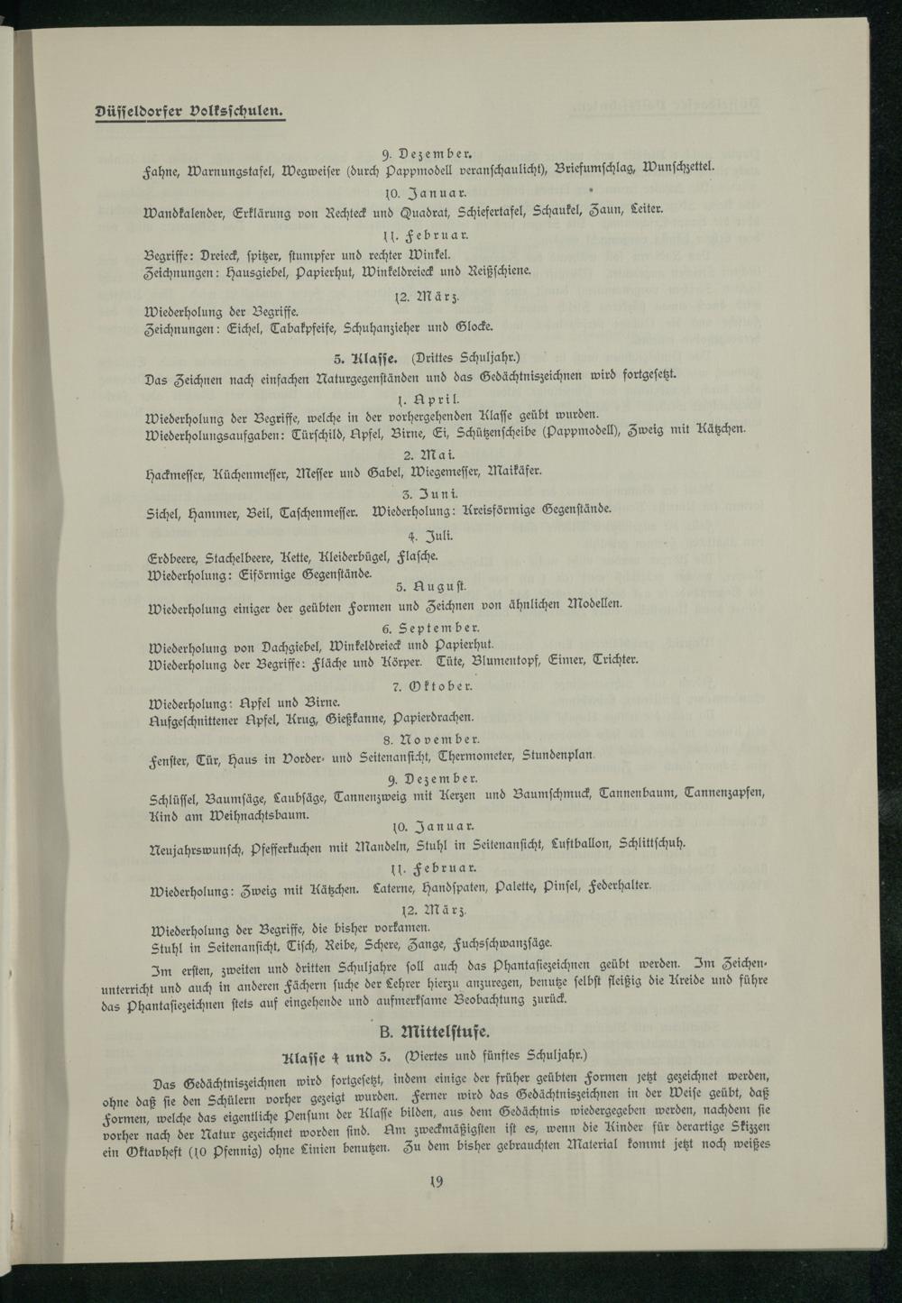 Lehrplan für den Zeichenunterricht in den Düsseldorfer Volksschulen.