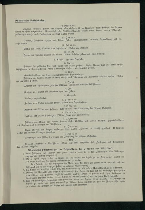 Lehrplan für den Zeichenunterricht in den Düsseldorfer Volksschulen.