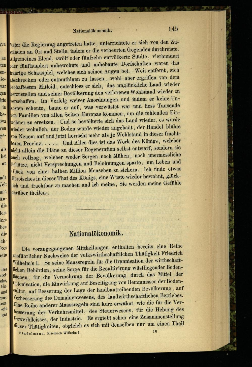 Friedrich Wilhelm I. in seiner Thätigkeit für die Landescultur Preußens / von Rudolph Stadelmann