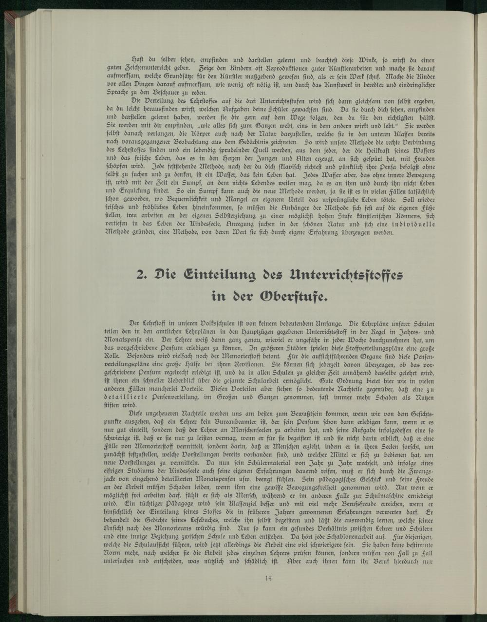 2. Die Einteilung des Unterrichtsstoffes in der Oberstufe.