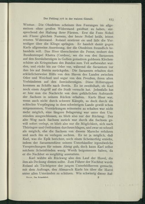 Das Rolandslied : als Geschichtsquelle und die Entstehung der Rolandsäulen$deine Studie ; Karls des Großen Feldzug gegen Retra und Stettin 778, Rolands Tod bei Prenzlau, sein Heldengedicht, seine askanischen Nachfolger, seine Denkmäler / von F. E. Mann