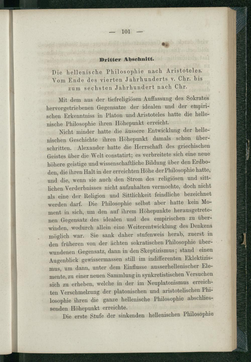 Dritter Anschnitt. Die hellenische Philosophie nach Aristoteles. Vom Ende des vierten Jahrhunderts v. Chr. bis zum sechsten Jahrhundert nach Chr.