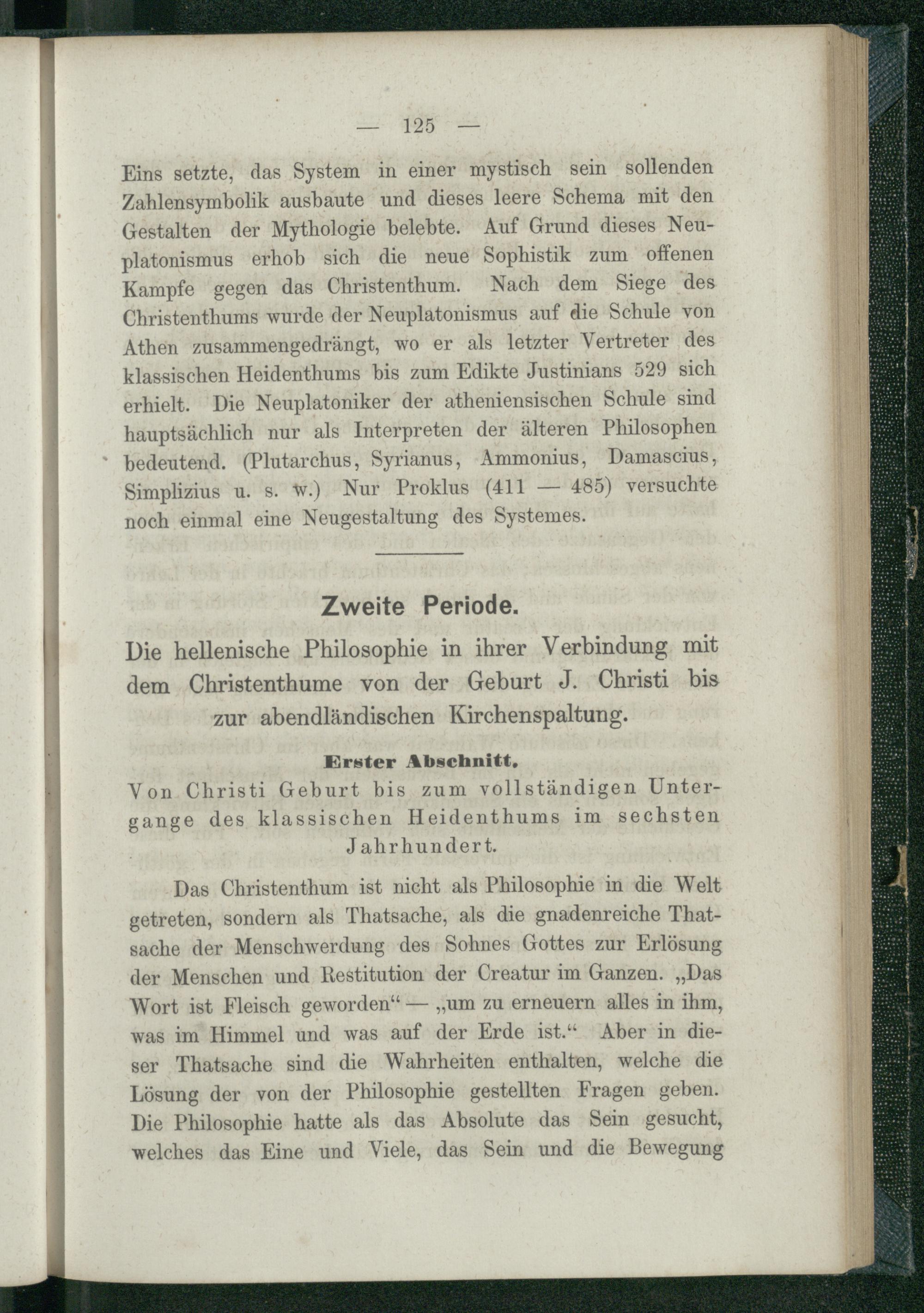 Zweite Periode. Die hellenistische Philosophie in ihrer Verbindung mit dem Christenthume von der Geburt J. Christi bis zur abendländischen Kirchenspaltung.