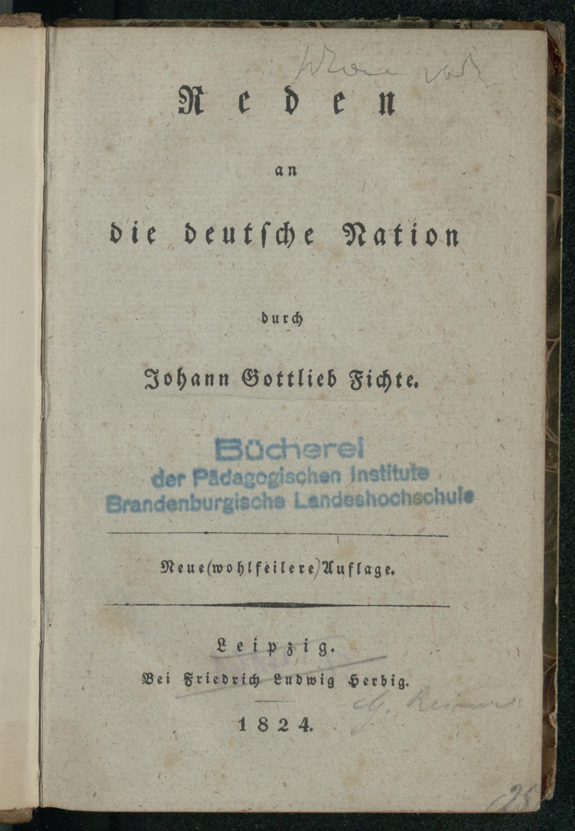 Reden an die deutsche Nation / durch Johann Gottlieb Fichte