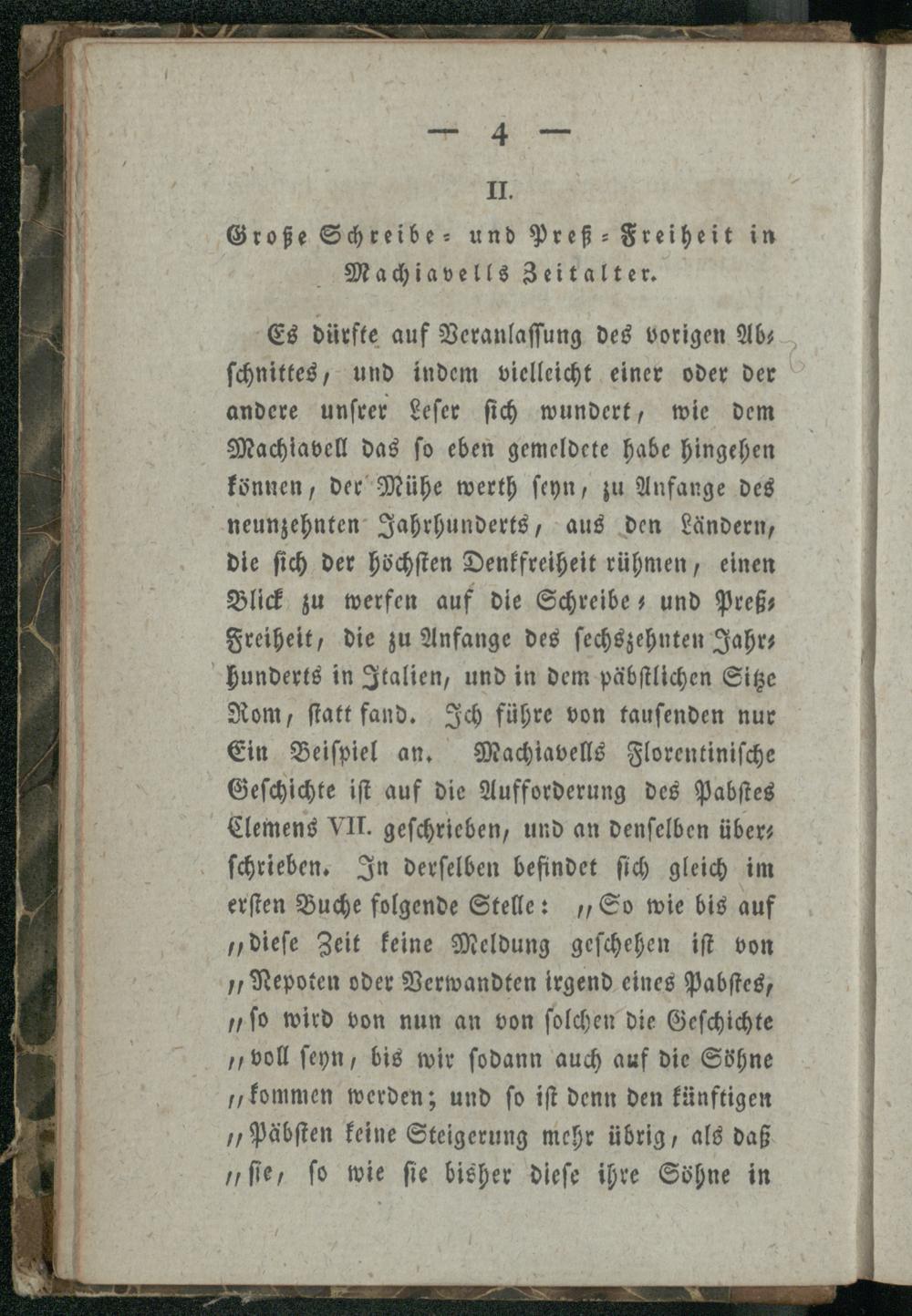 II. Große Schreibe- und Preß-Freiheit in Machiavells Zeitalter.