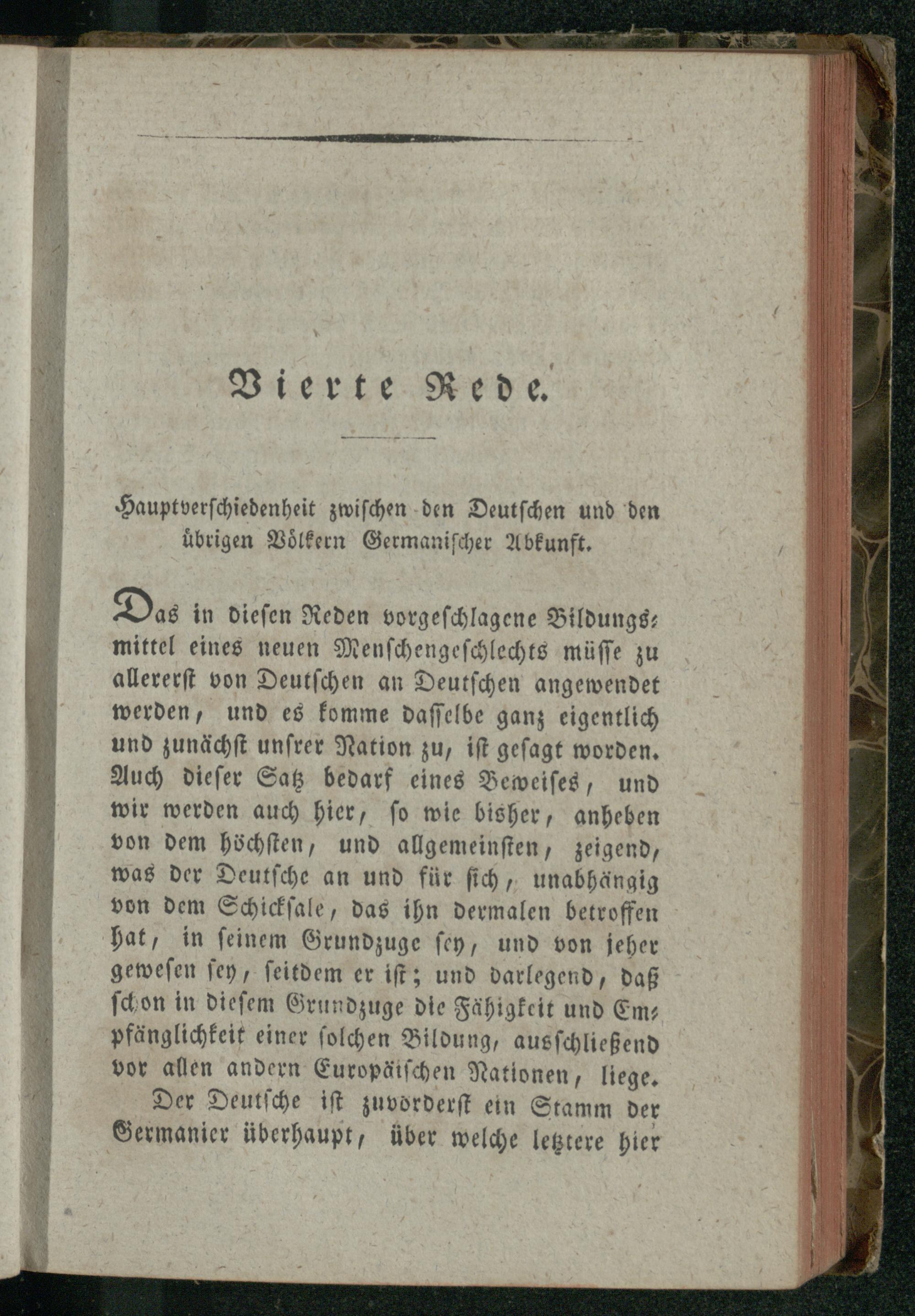 Vierte Rede. Hauptverschiedenheit zwischen den Deutschen und den übrigen Völkern Germanischer Abkunft.