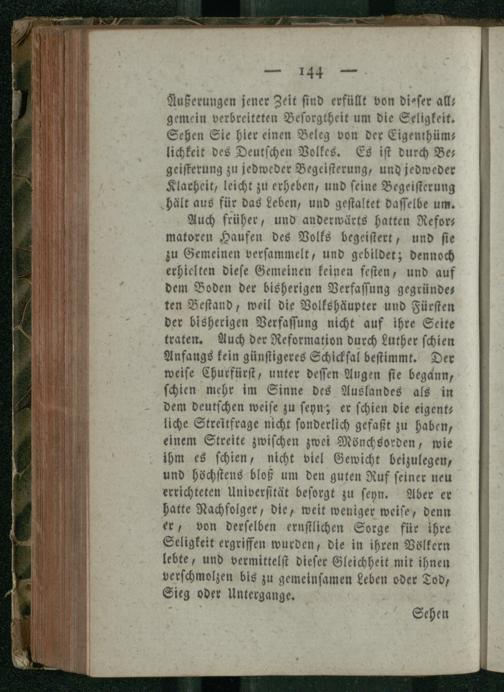 Achte Rede. Was ein Volk sey, in der höhern Bedeutung des Worts, und was Vaterlandsliebe.