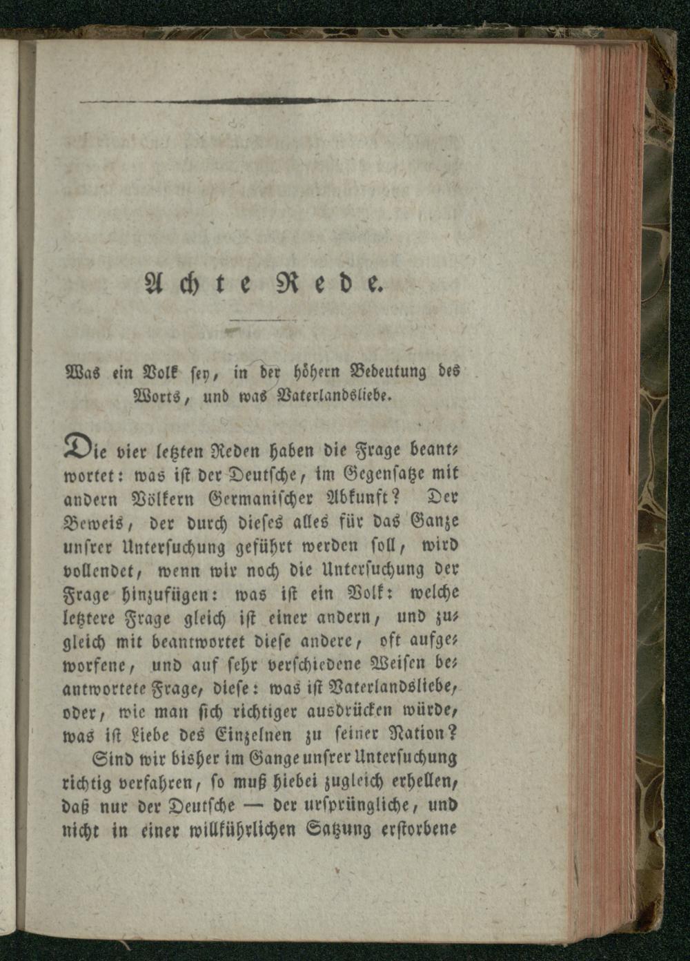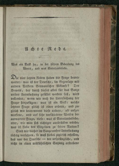 Achte Rede. Was ein Volk sey, in der höhern Bedeutung des Worts, und was Vaterla...