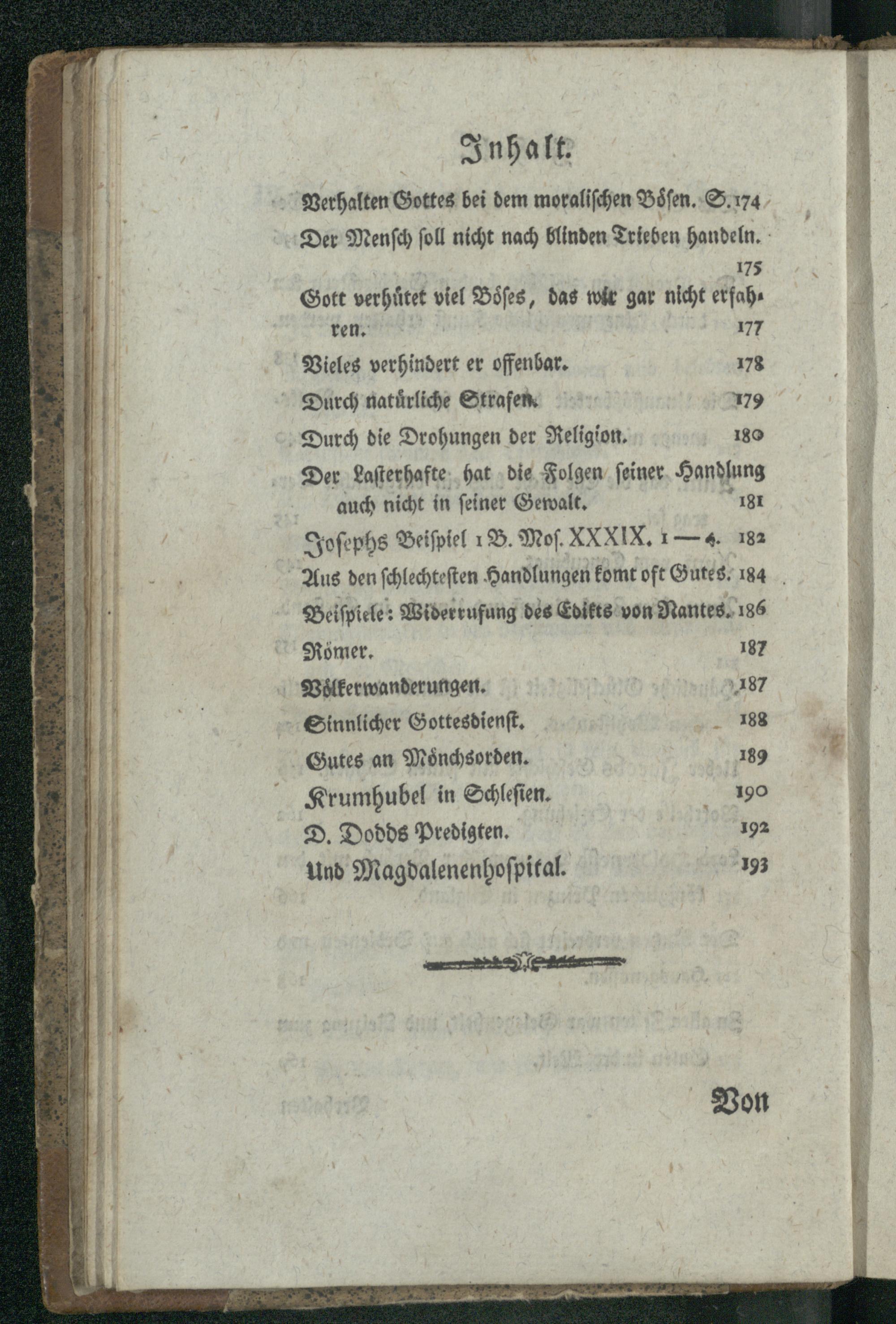 I. Von der Vorsehung. Ueber die Vorsehung Gottes.
