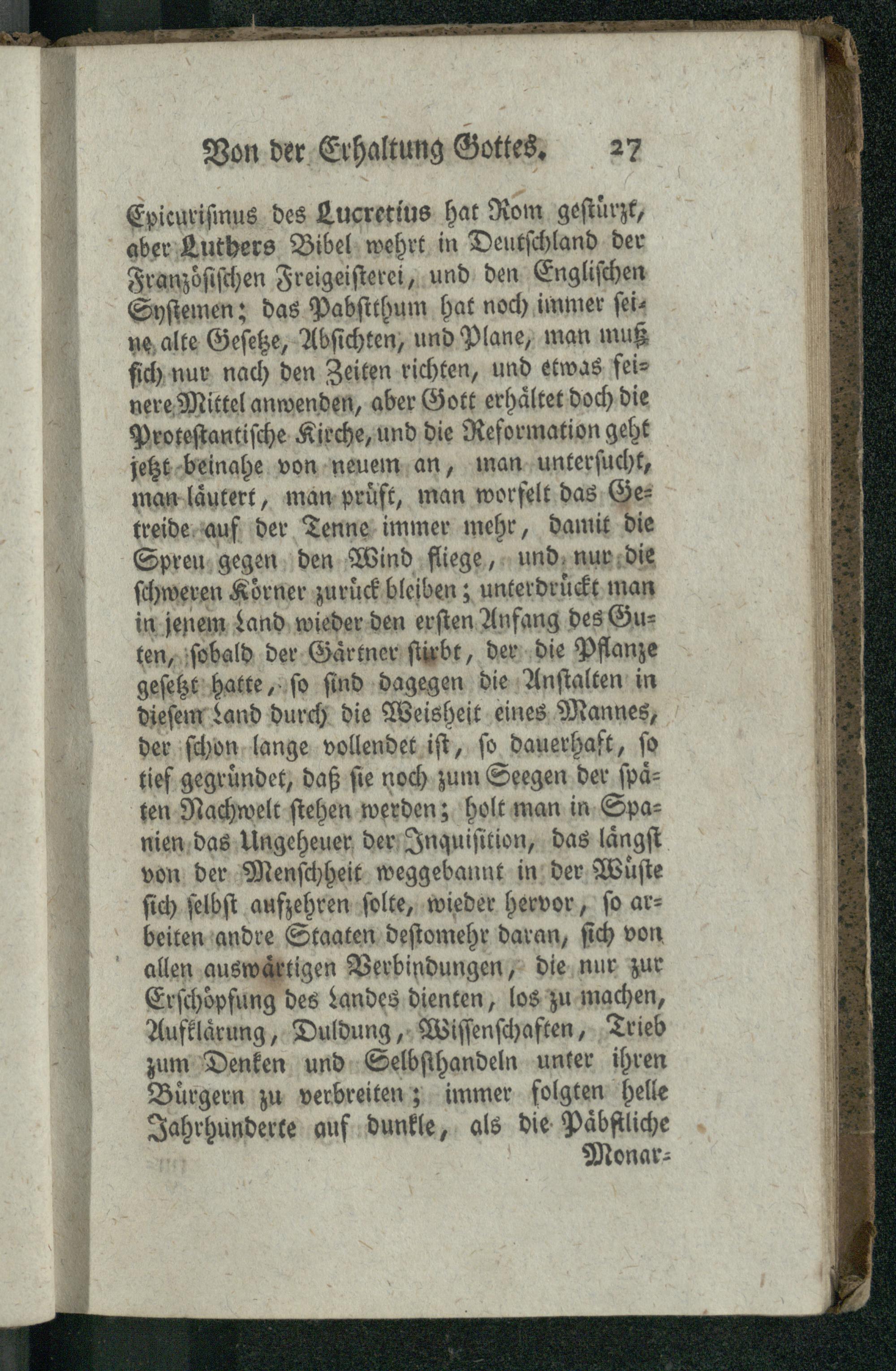 I. Von der Vorsehung. Ueber die Vorsehung Gottes.