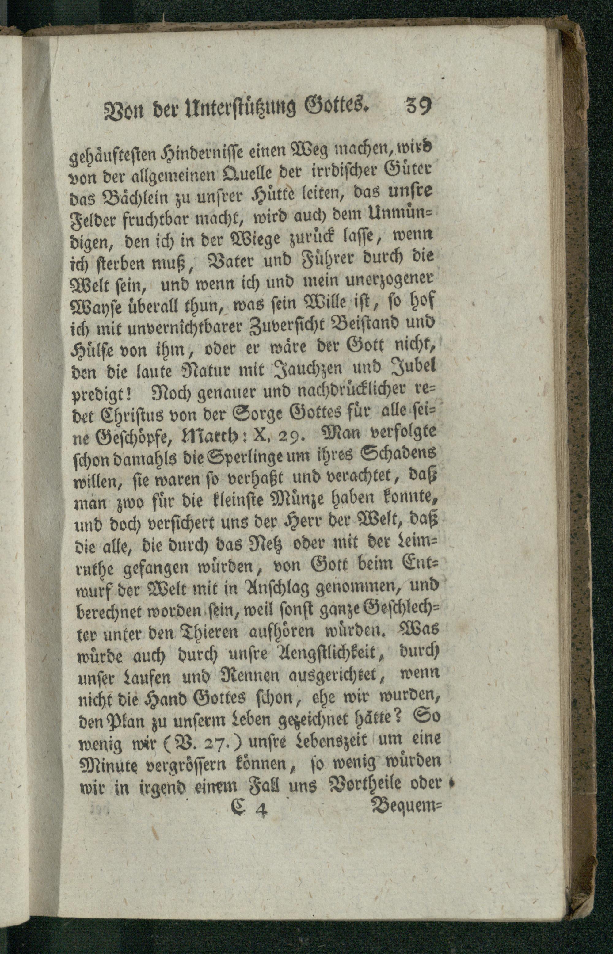 I. Von der Vorsehung. Ueber die Vorsehung Gottes.