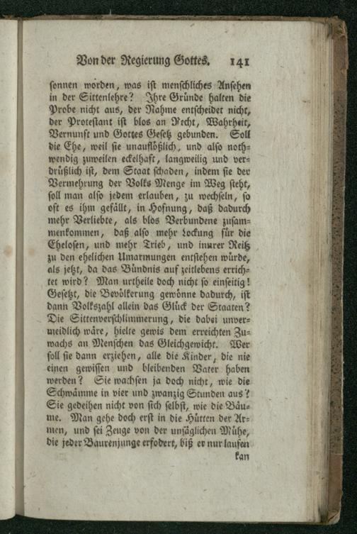 I. Von der Vorsehung. Ueber die Vorsehung Gottes.
