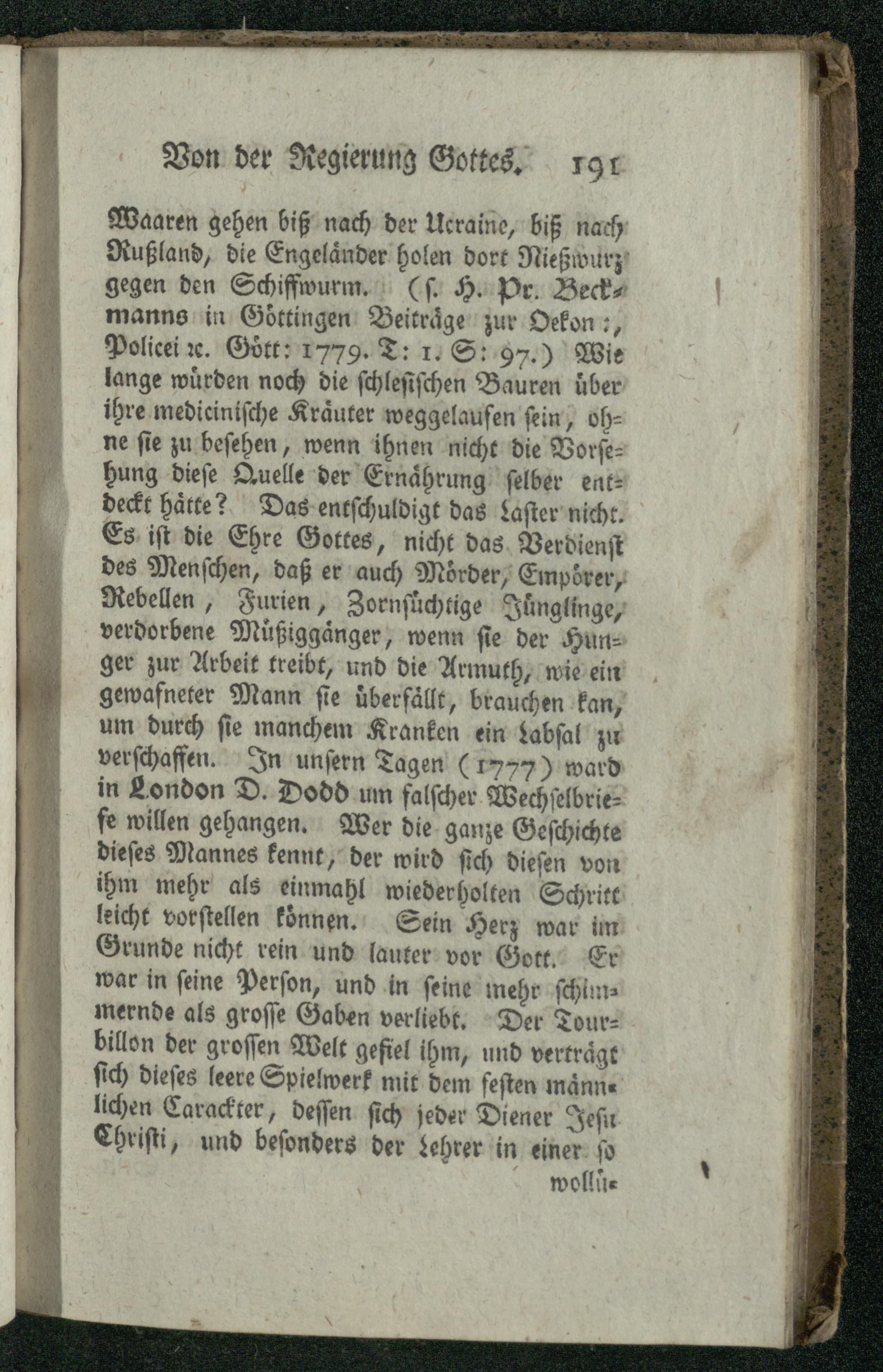 I. Von der Vorsehung. Ueber die Vorsehung Gottes.