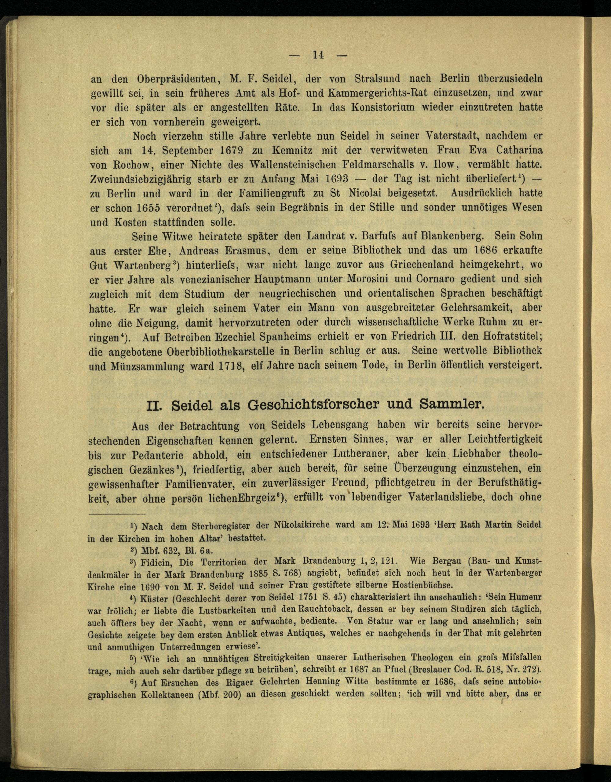 Martin Friedrich Seidel, ein brandenburgischer Geschichtsforscher des 17. Jahrhunderts / von Johannes Bolte