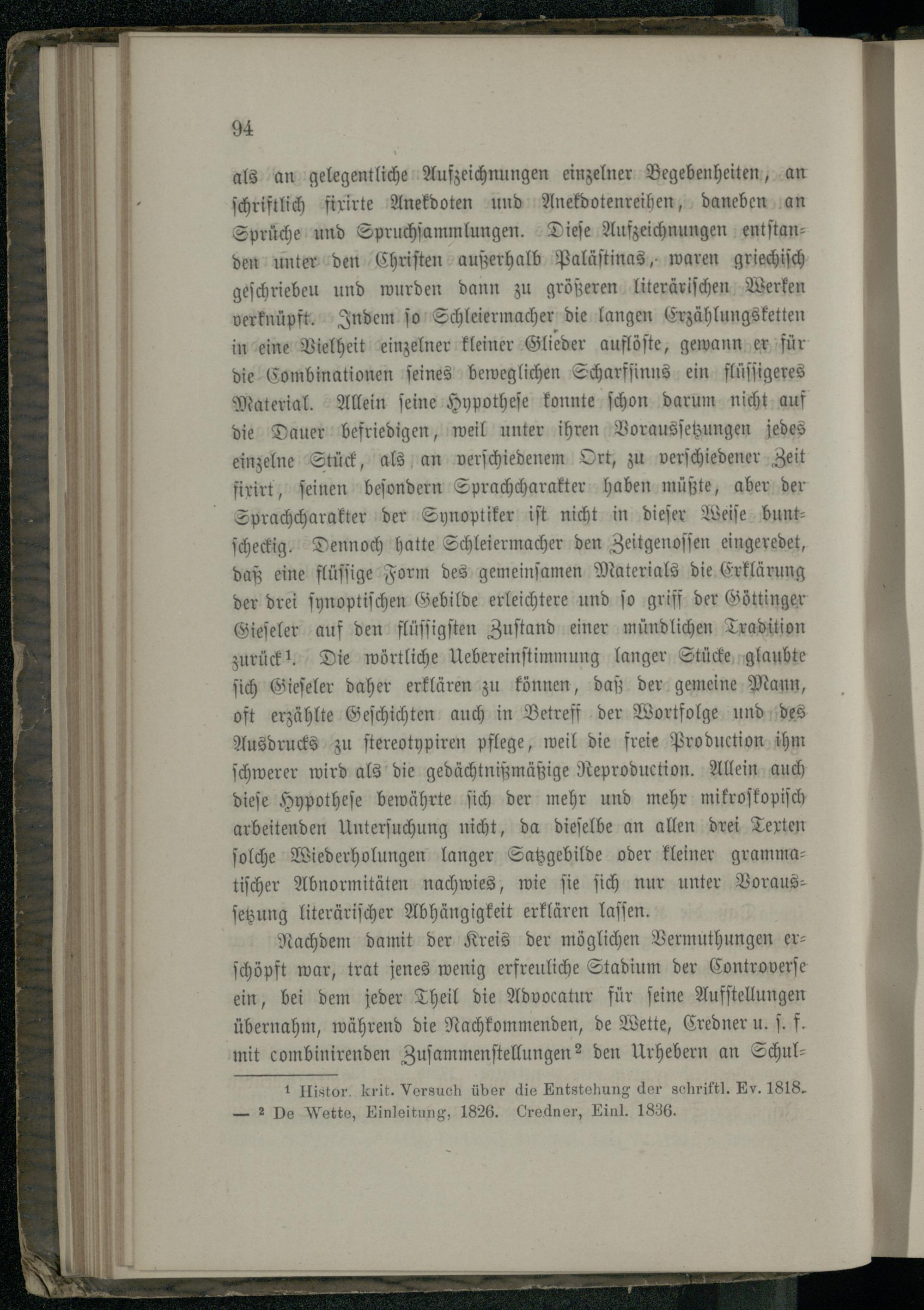 2. Die Evangelienfrage um 1835.