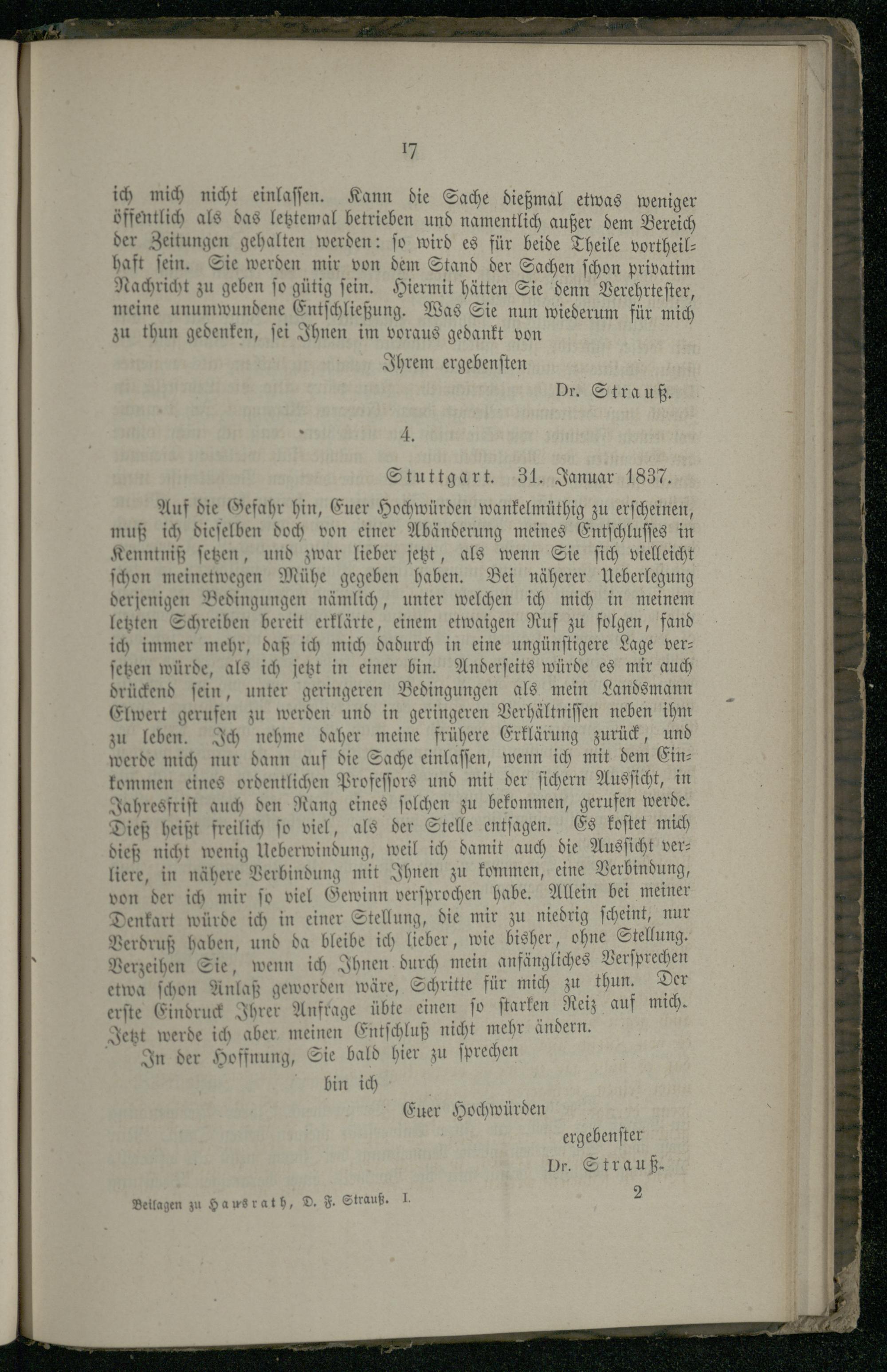IV. Briefe von Strauß an Hitzig.