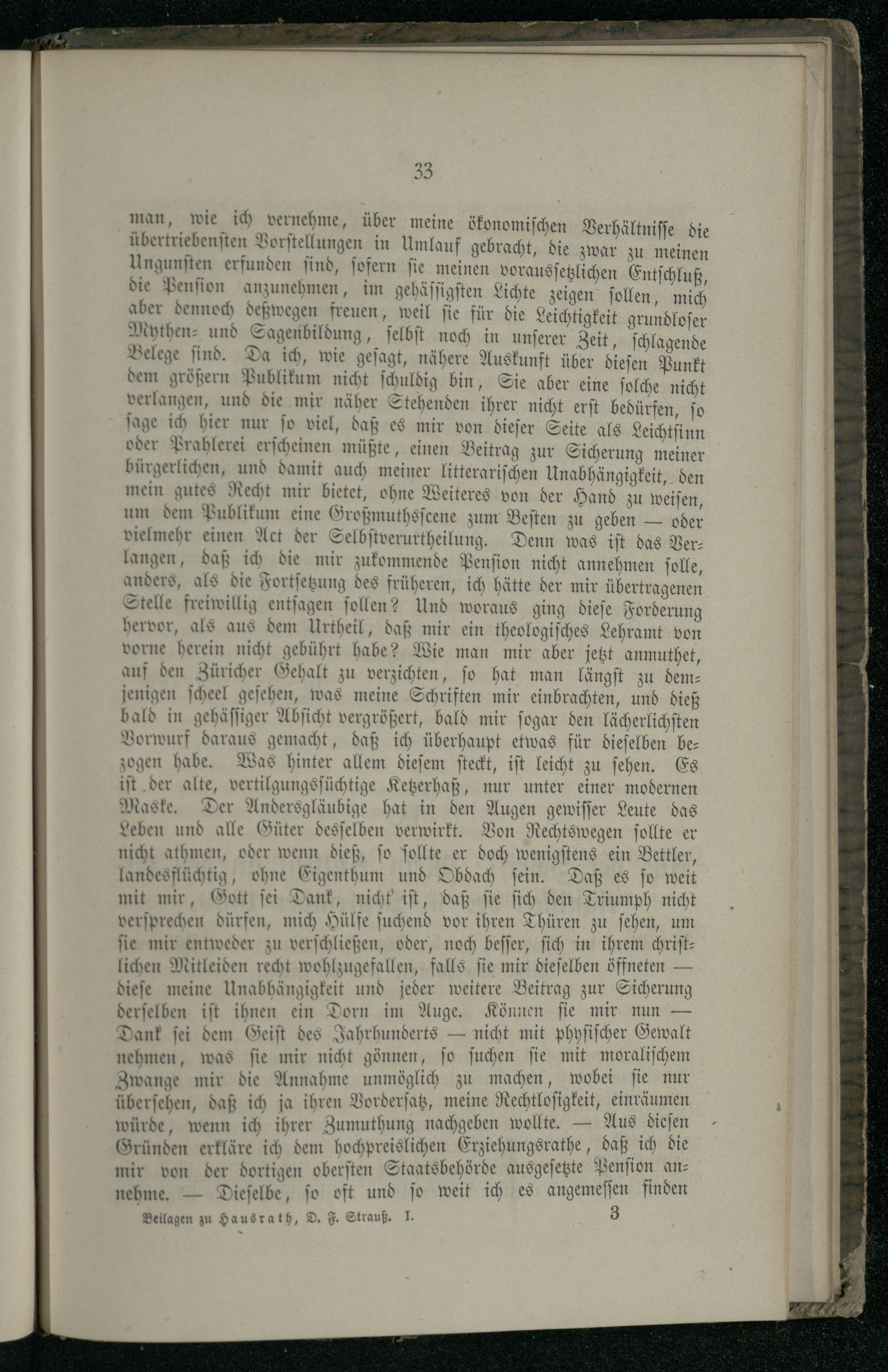 VIII. Erklärung von Strauß in Betreff seiner Pensionirung.