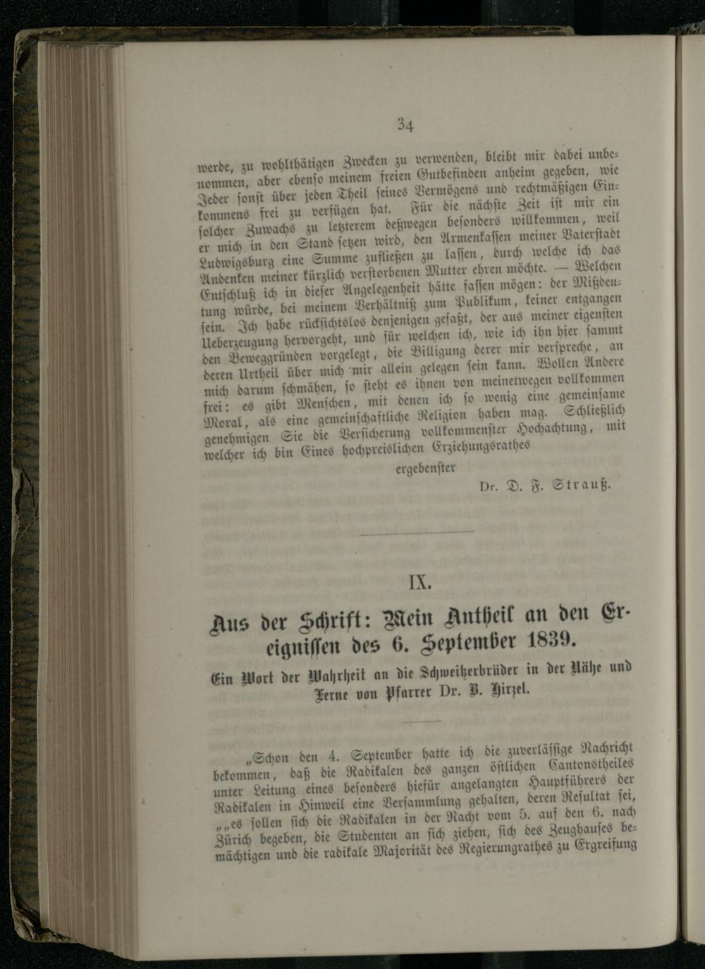 IX. Aus der Schrift: Mein Antheil an den Ereignissen des 6. September 1839.