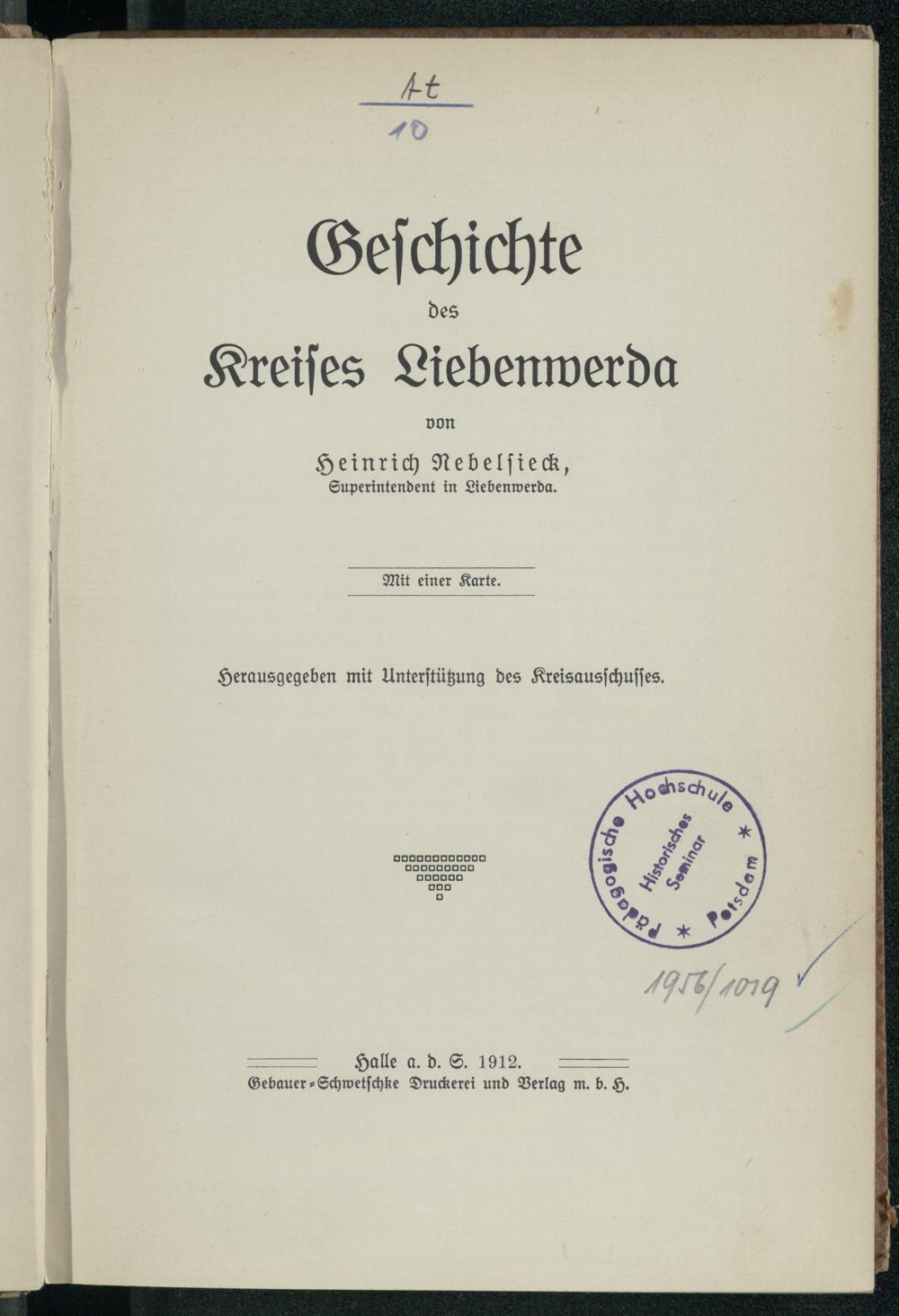 Geschichte des Kreises Liebenwerda / von Heinrich Nebelsieck