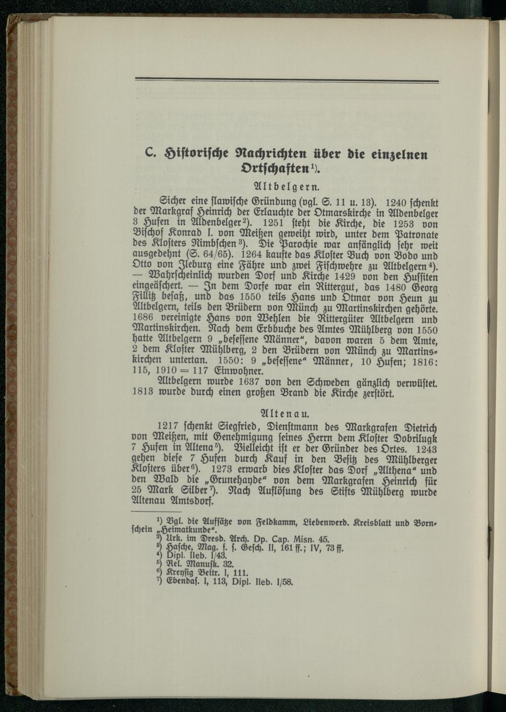 C. Historische Nachrichten über die einzelnen Ortschaften.