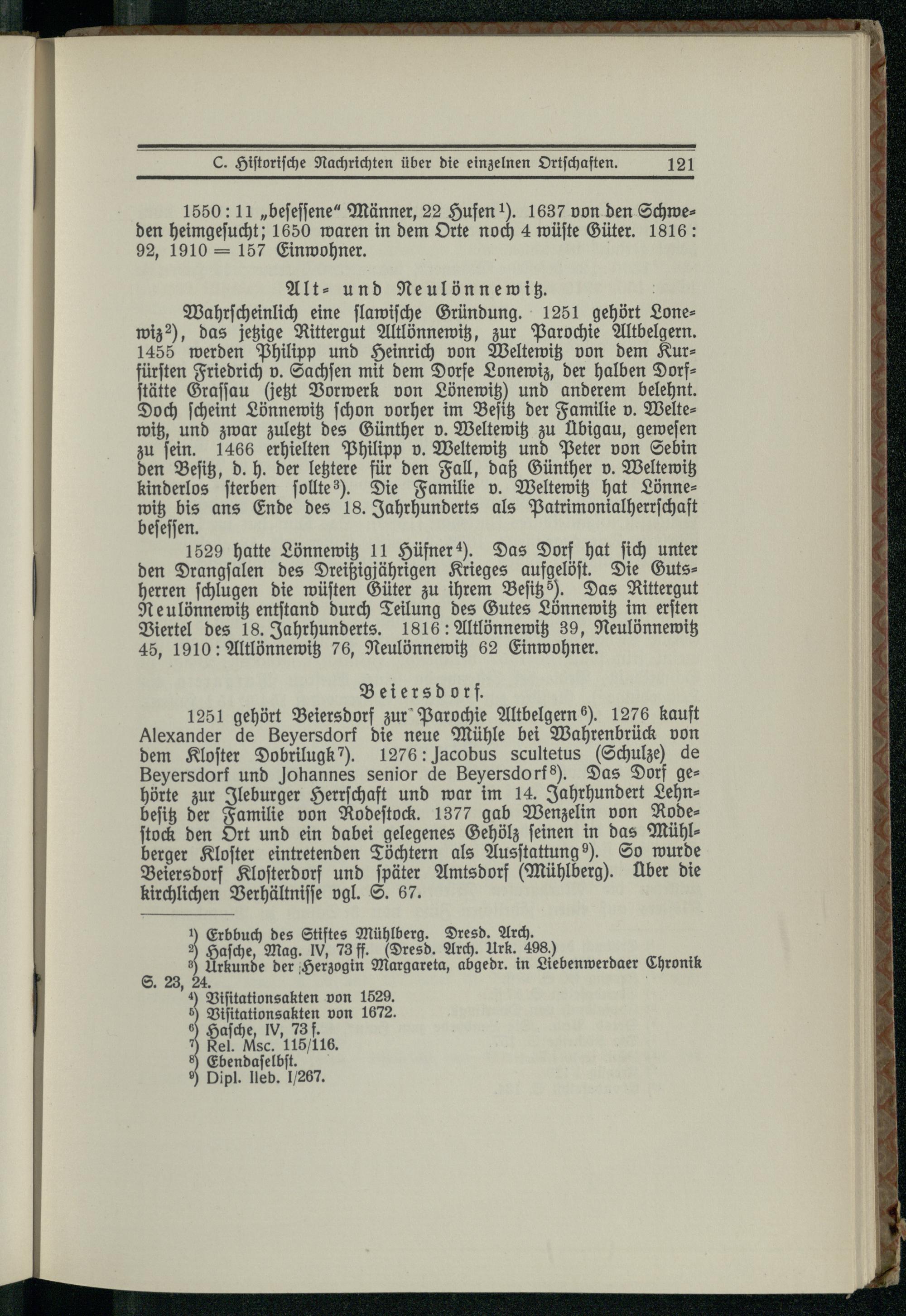 C. Historische Nachrichten über die einzelnen Ortschaften.