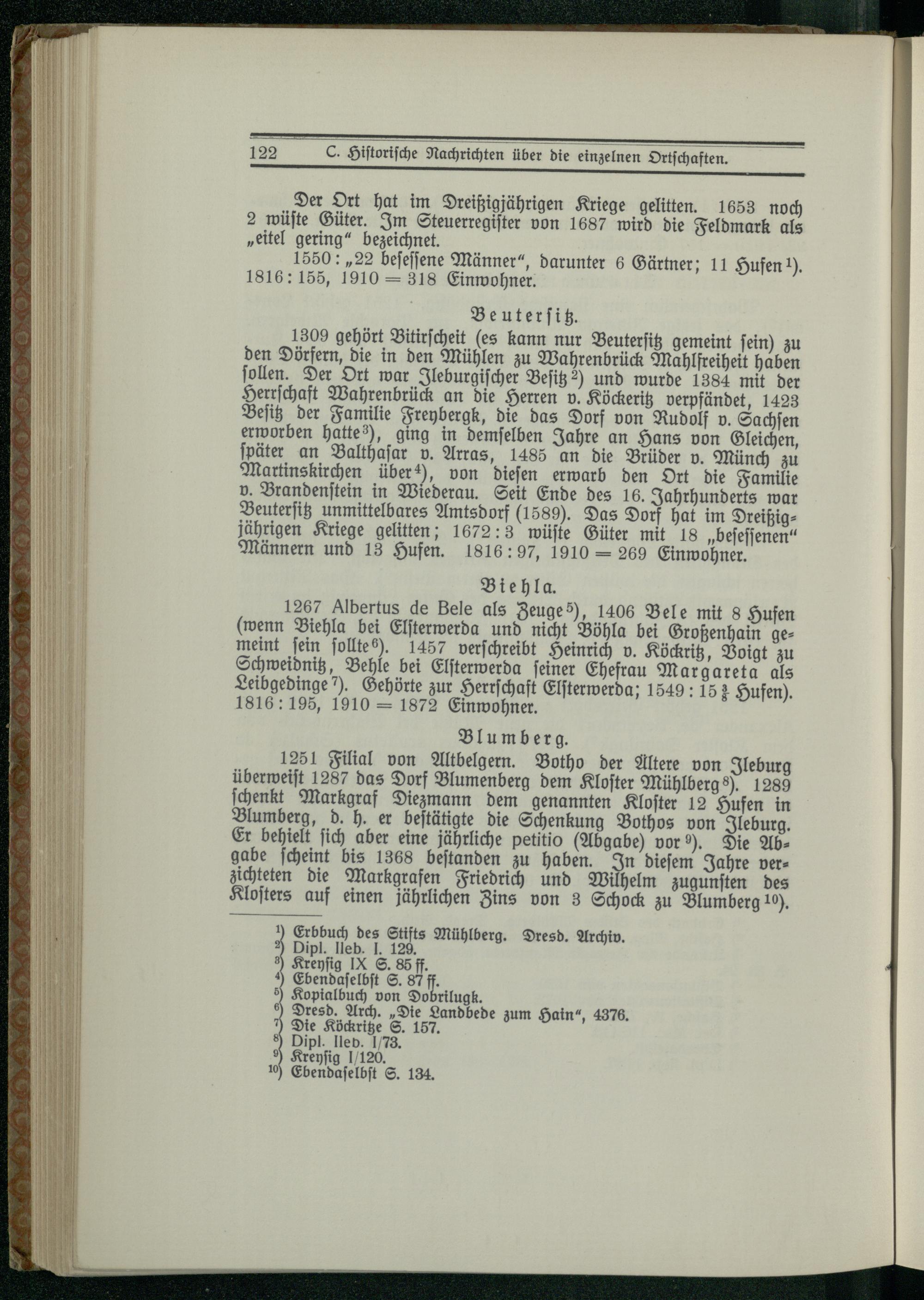 C. Historische Nachrichten über die einzelnen Ortschaften.