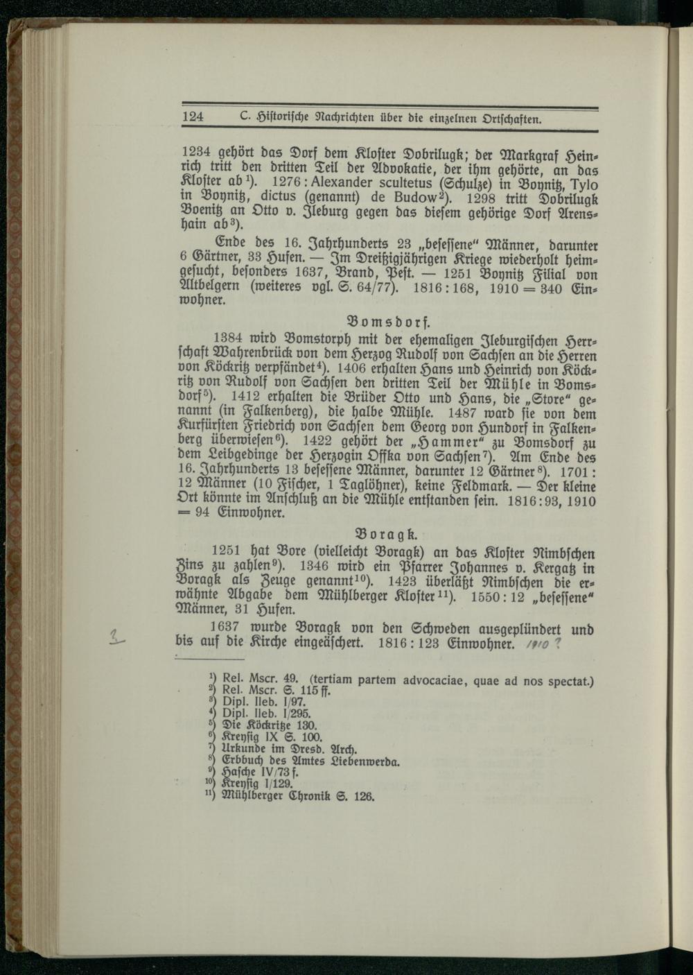 C. Historische Nachrichten über die einzelnen Ortschaften.