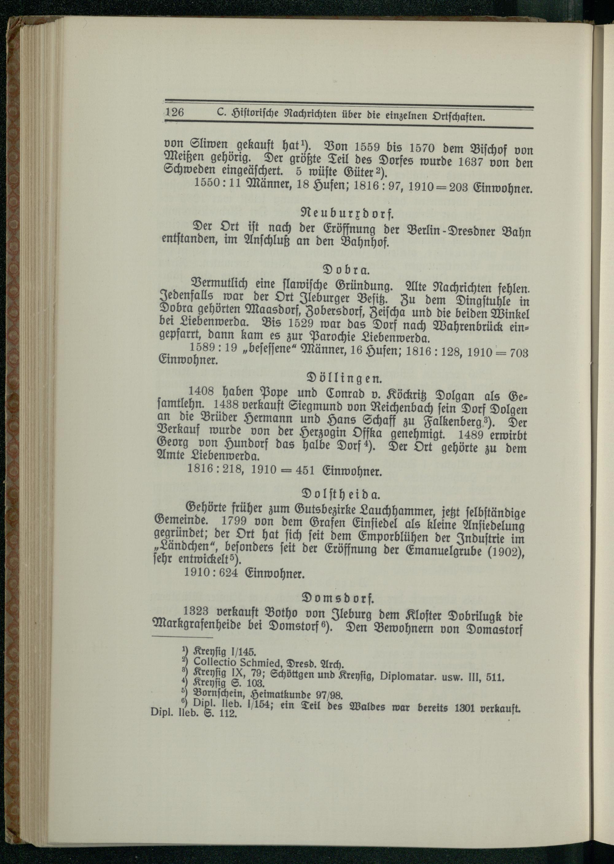 C. Historische Nachrichten über die einzelnen Ortschaften.
