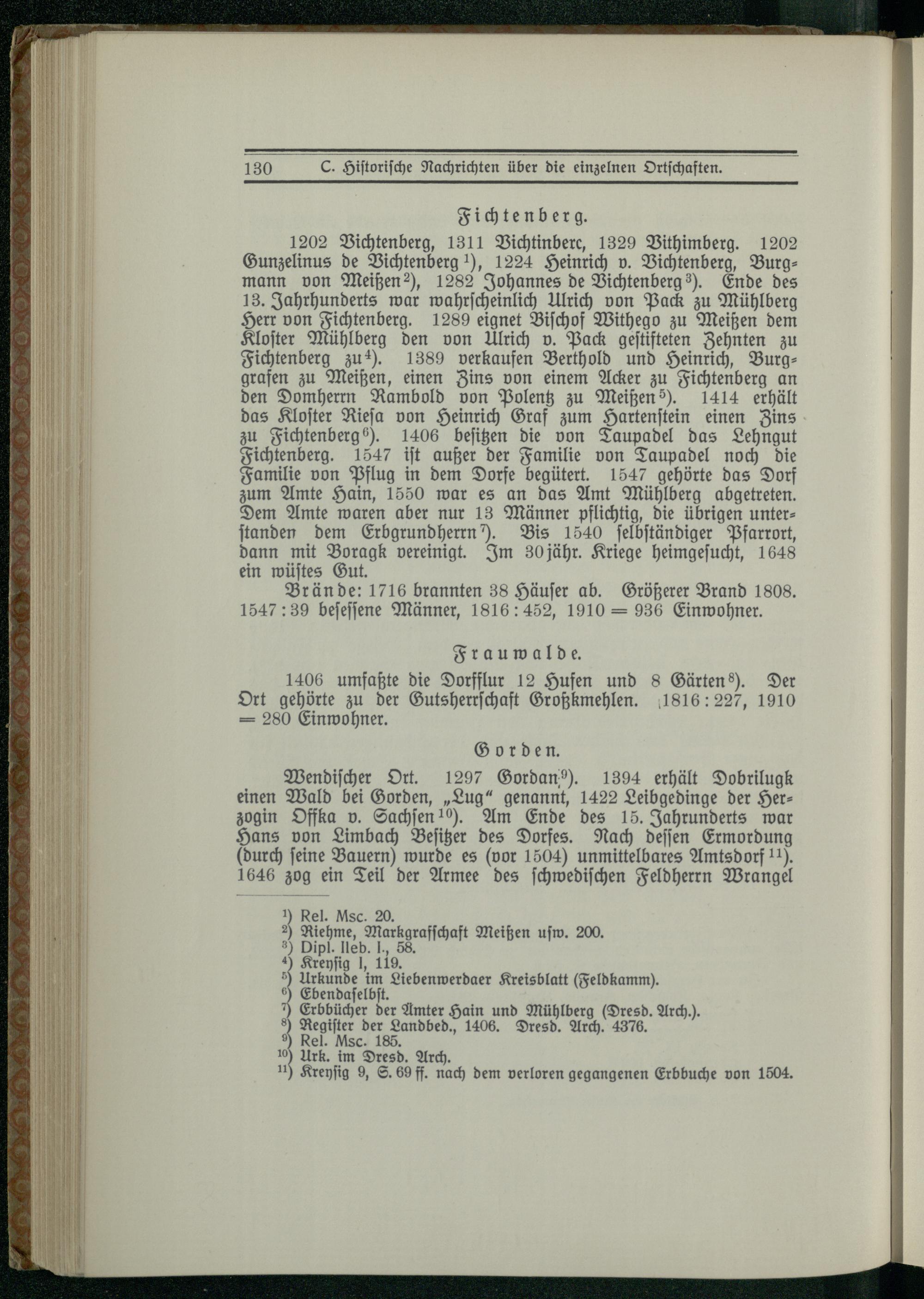 C. Historische Nachrichten über die einzelnen Ortschaften.