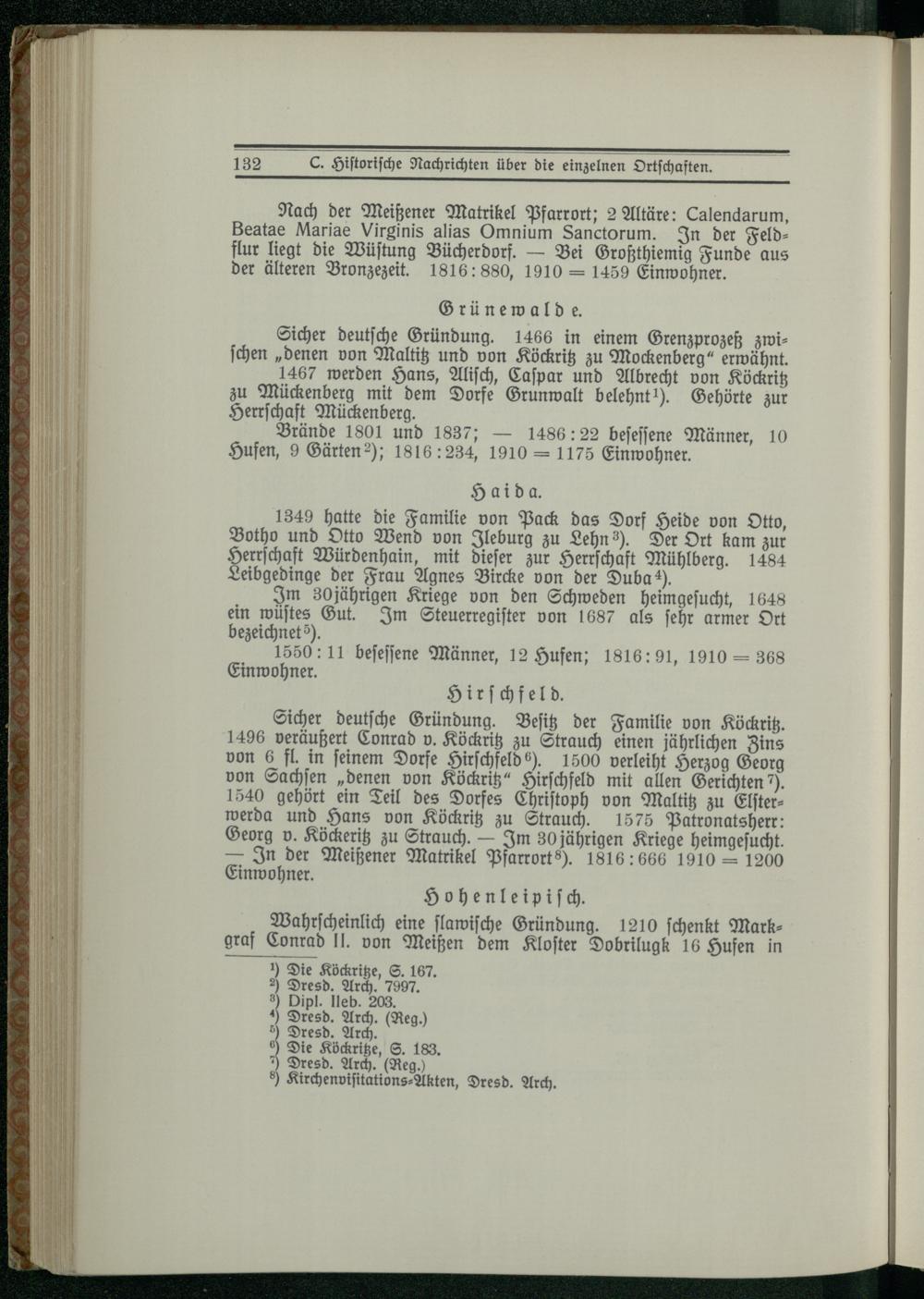 C. Historische Nachrichten über die einzelnen Ortschaften.