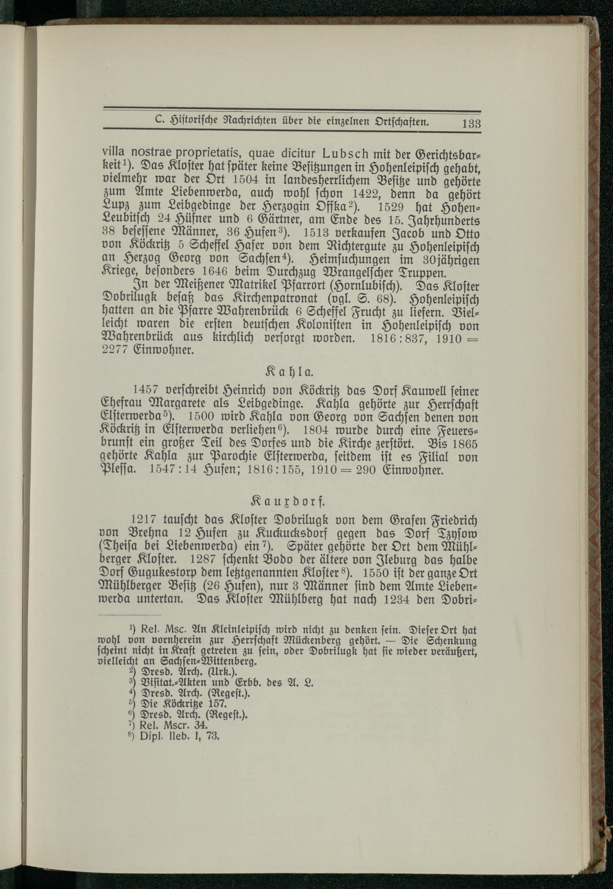 C. Historische Nachrichten über die einzelnen Ortschaften.