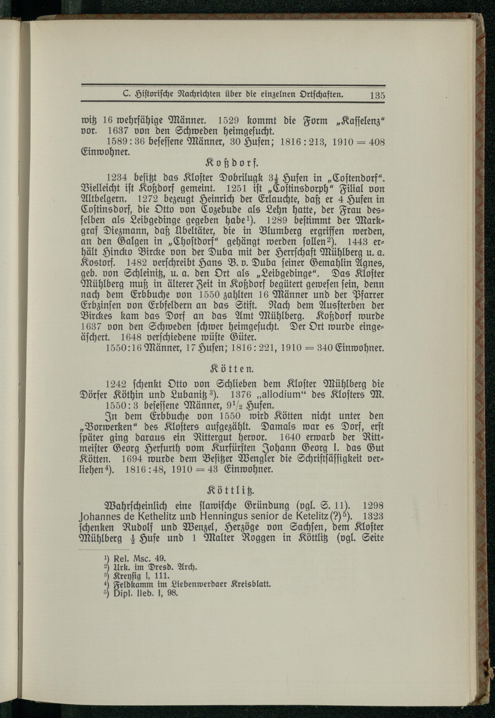 C. Historische Nachrichten über die einzelnen Ortschaften.