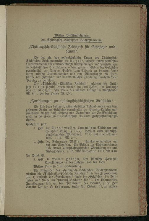 Weitere Veröffentlichungen des Thüringisch-Sächsischen Geschichtsvereins.