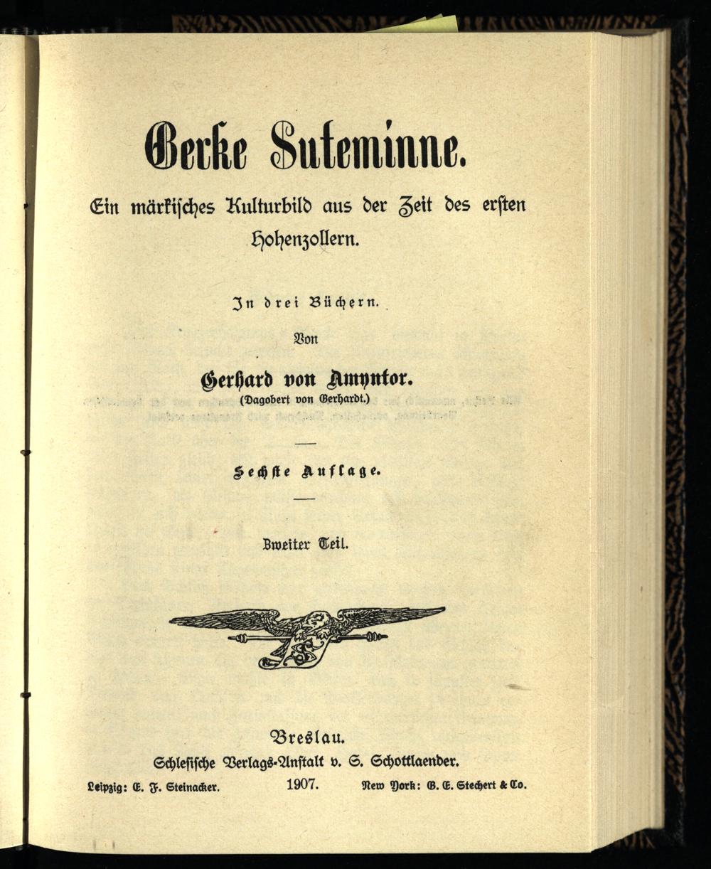Gerke Suteminne : ein märkisches Kulturbild aus der Zeit des ersten Hohenzollern : in drei Büchern / von Gerhard von Amyntor
