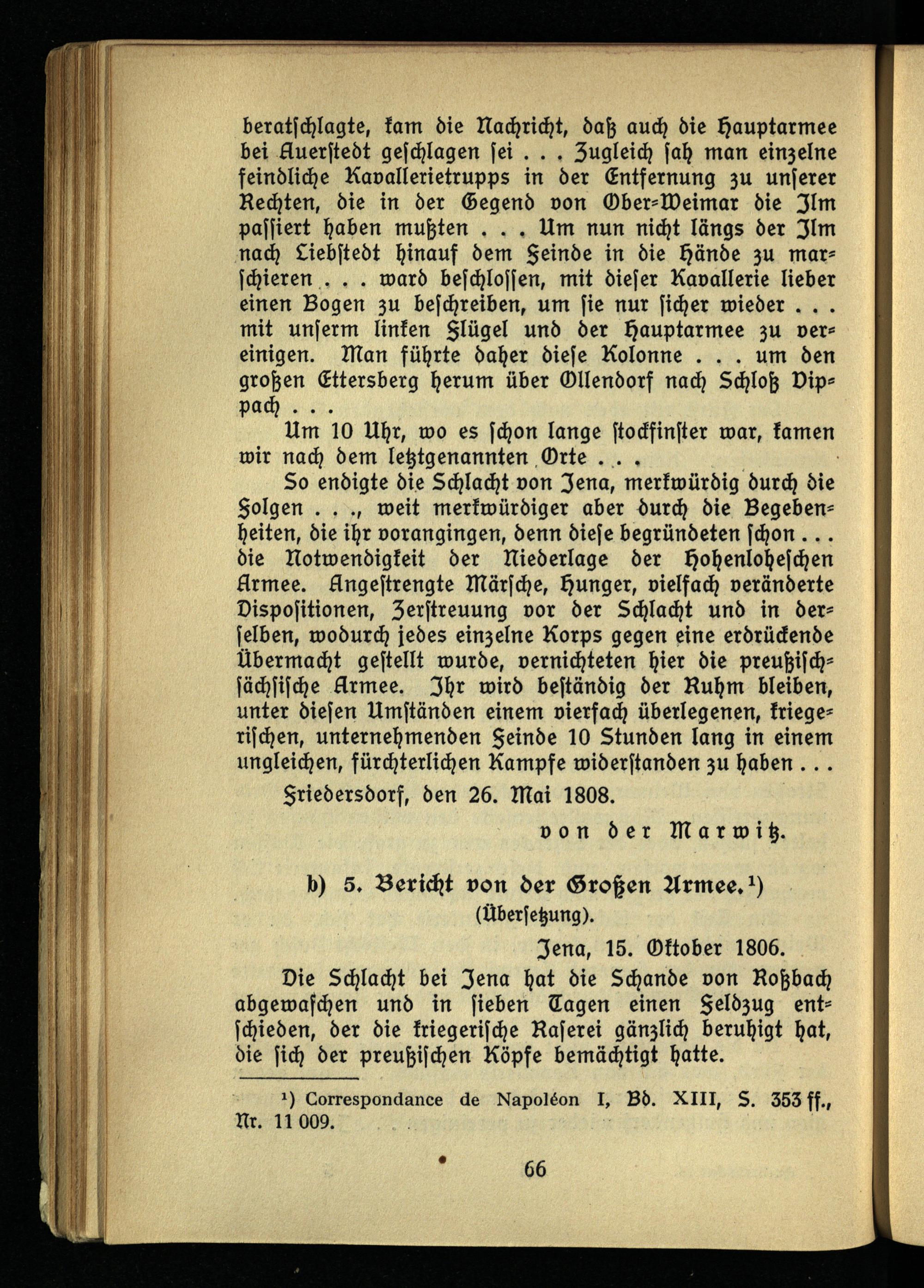 b) Bericht des Königs Friedrich Wilhelm III. über die Schlacht bei Auerstedt.