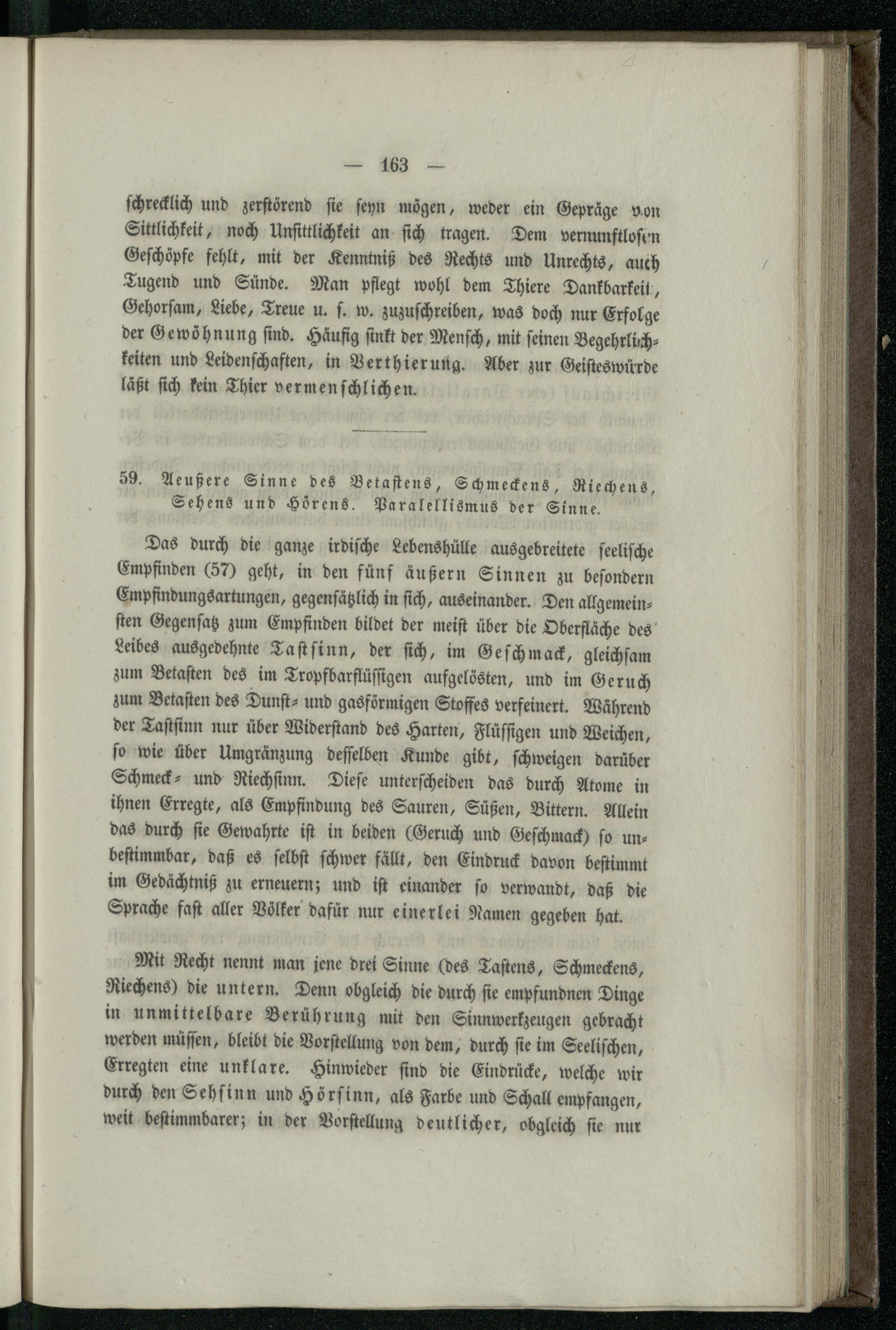 59. Aeußere Sinne des Betastens, Schmeckens, Riechens, Sehens und Hörens. Paralellismus...