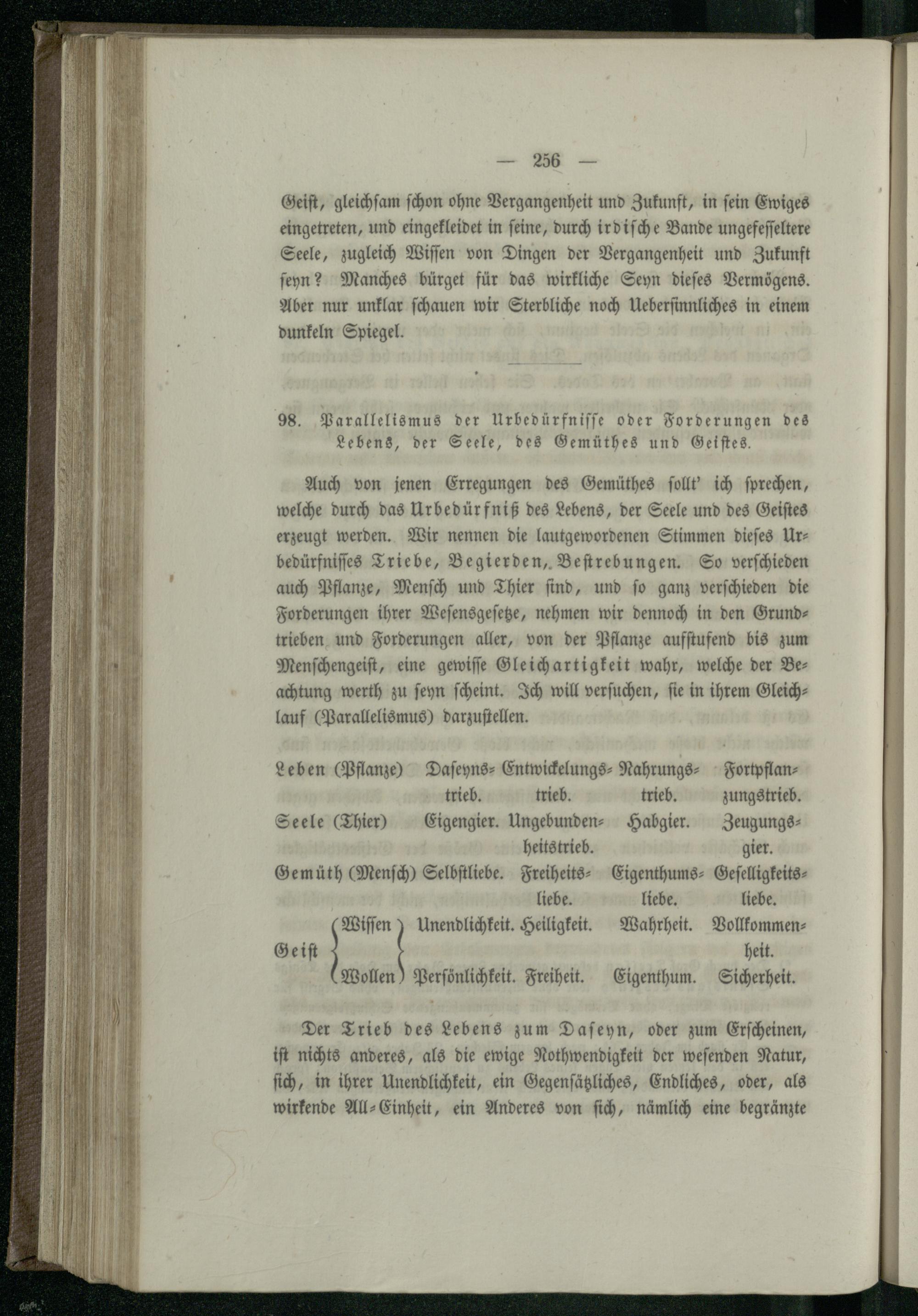 98. Parallelismus der Urbedürfnisse oder Forderungen des Lebens, der Seele, des Gemüthes...