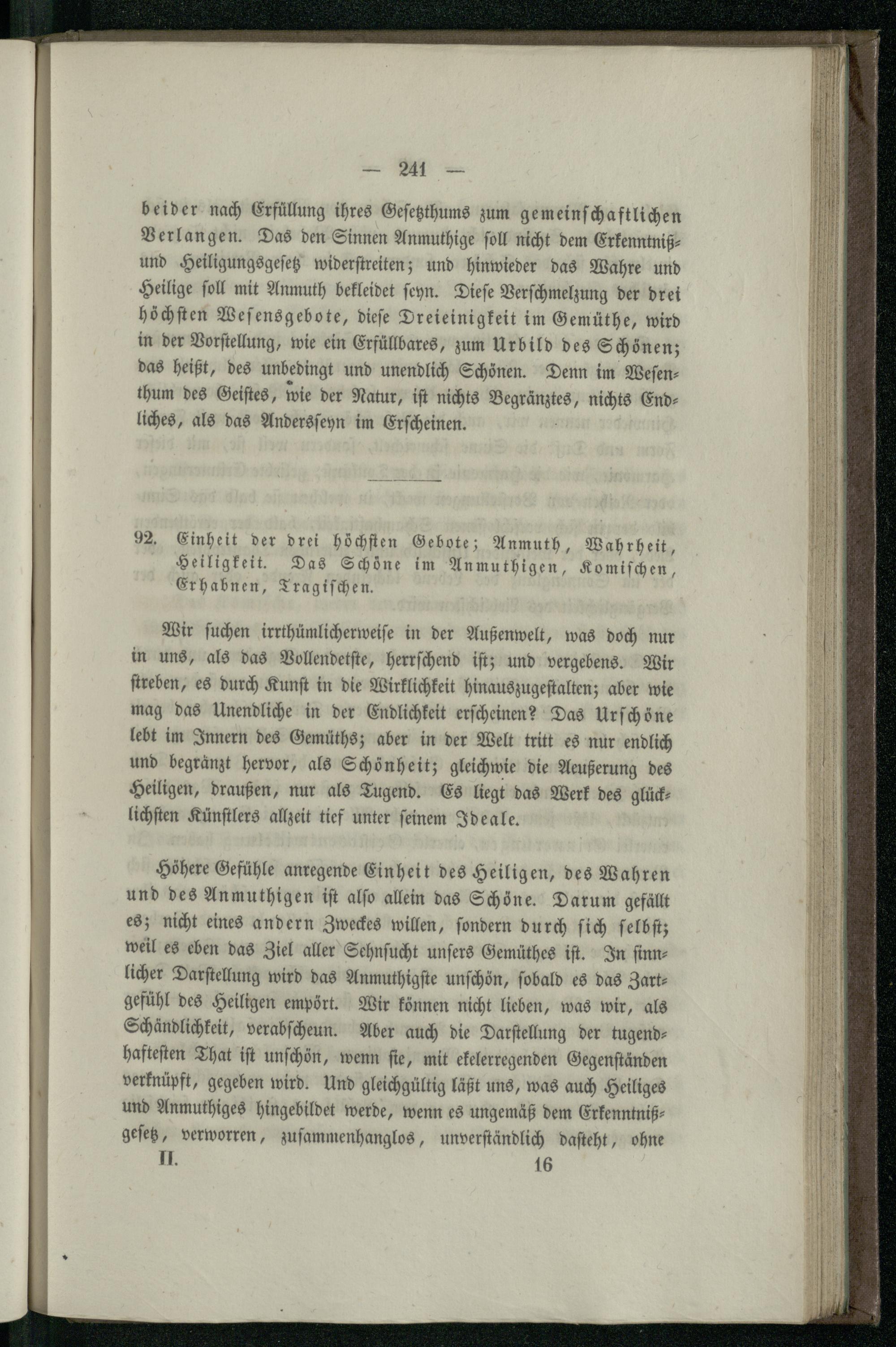 92. Einheit der drei höchsten Gebote; Anmuth, Wahrheit, Heiligkeit. Das Schöne im...