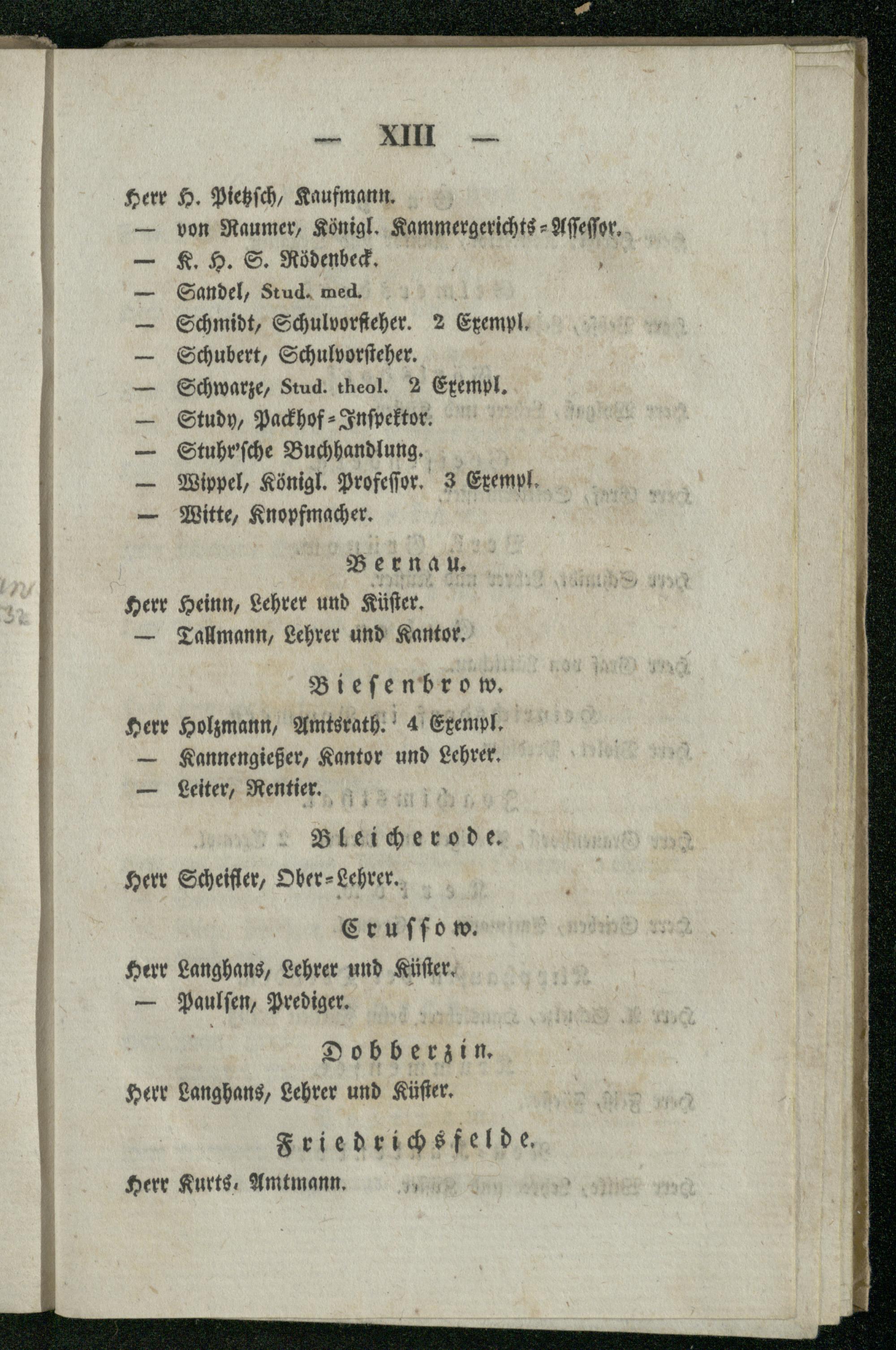 Namer der Subscribenten.