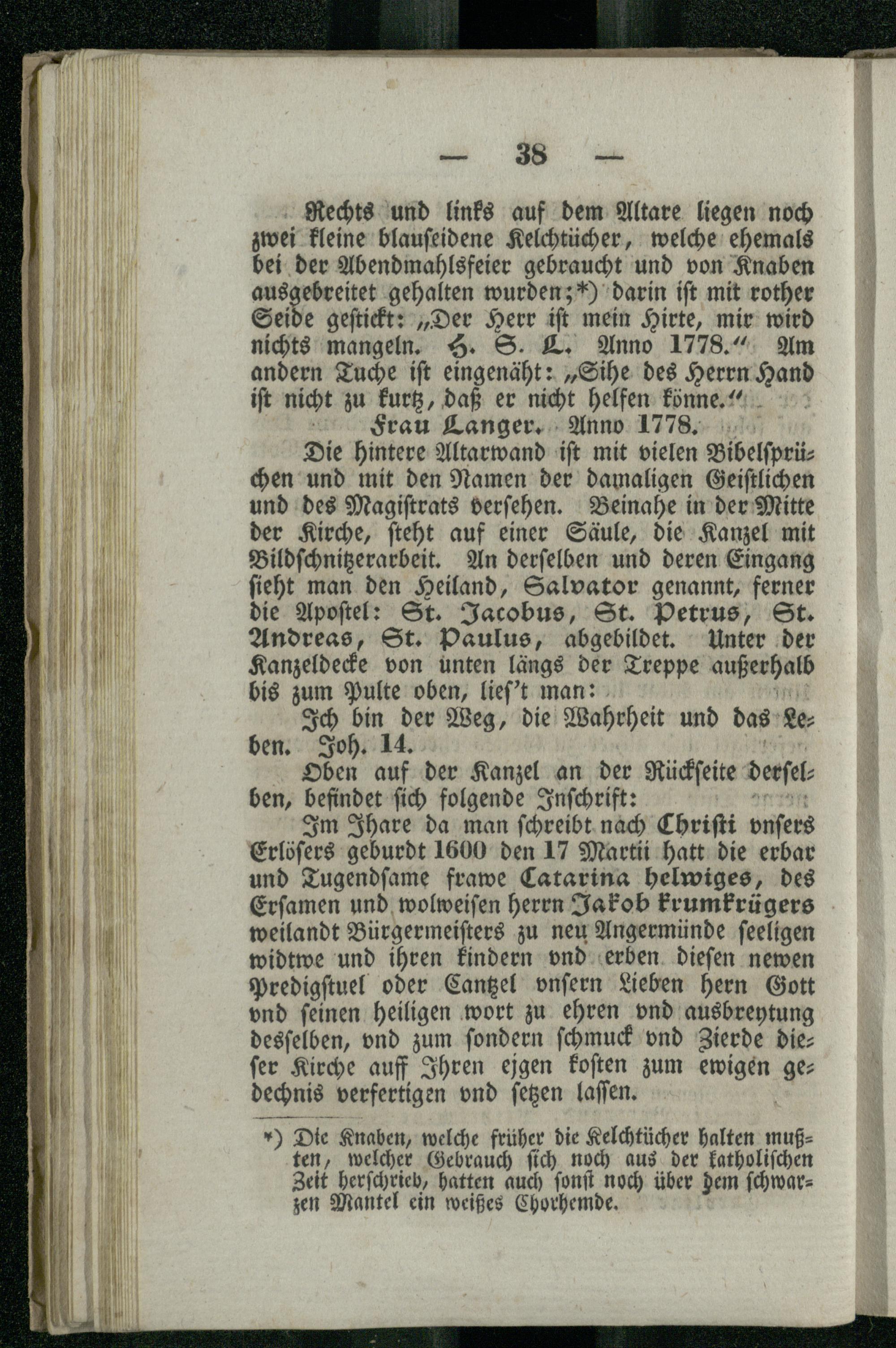 §. 1. [Über ihren Namen, ihr Alter; Beschreibung des Altars, der Kanzel un der O...