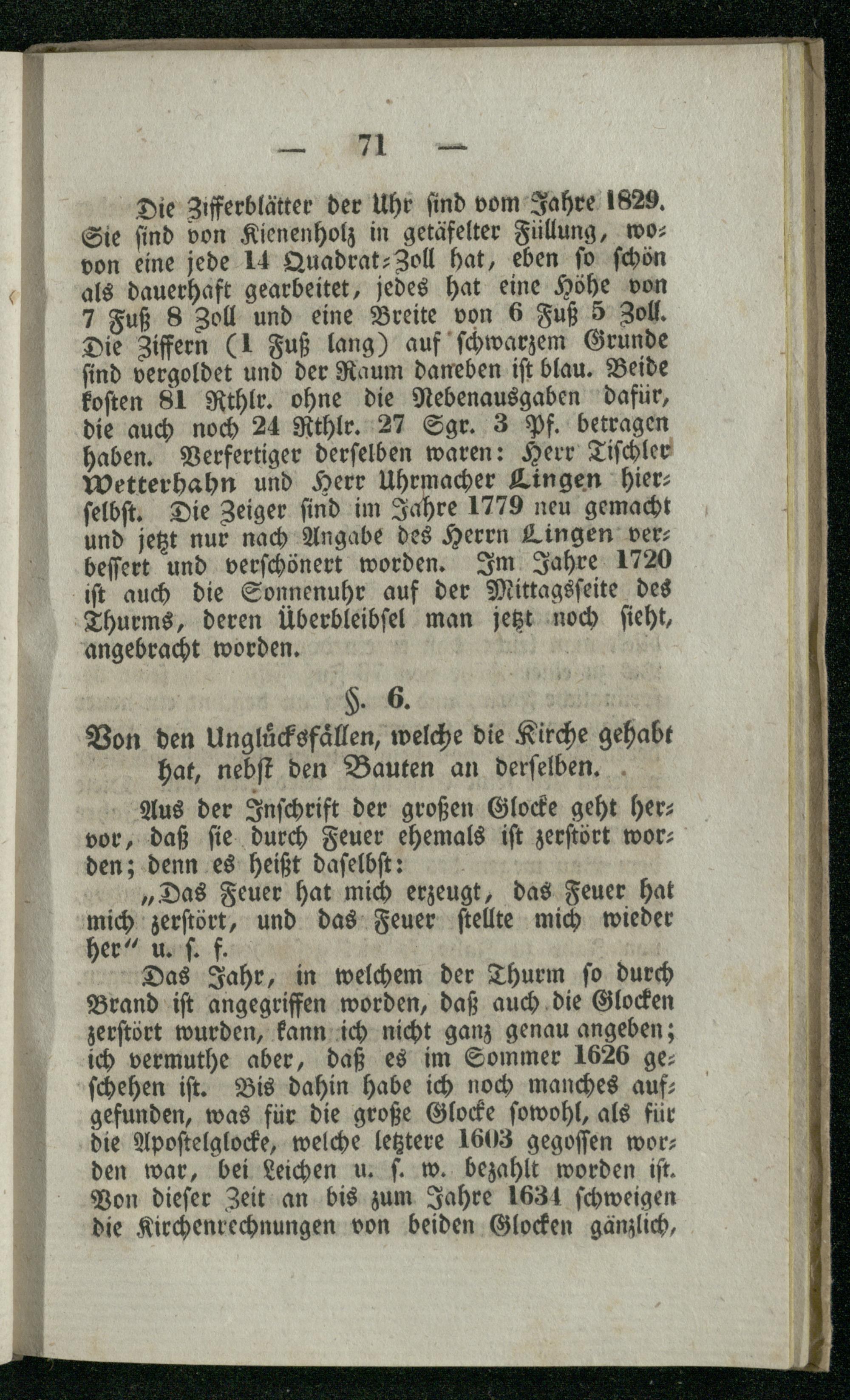 §. 5. Von dem Thurme, den darin haengenden Glocken und der Thurmuhr.