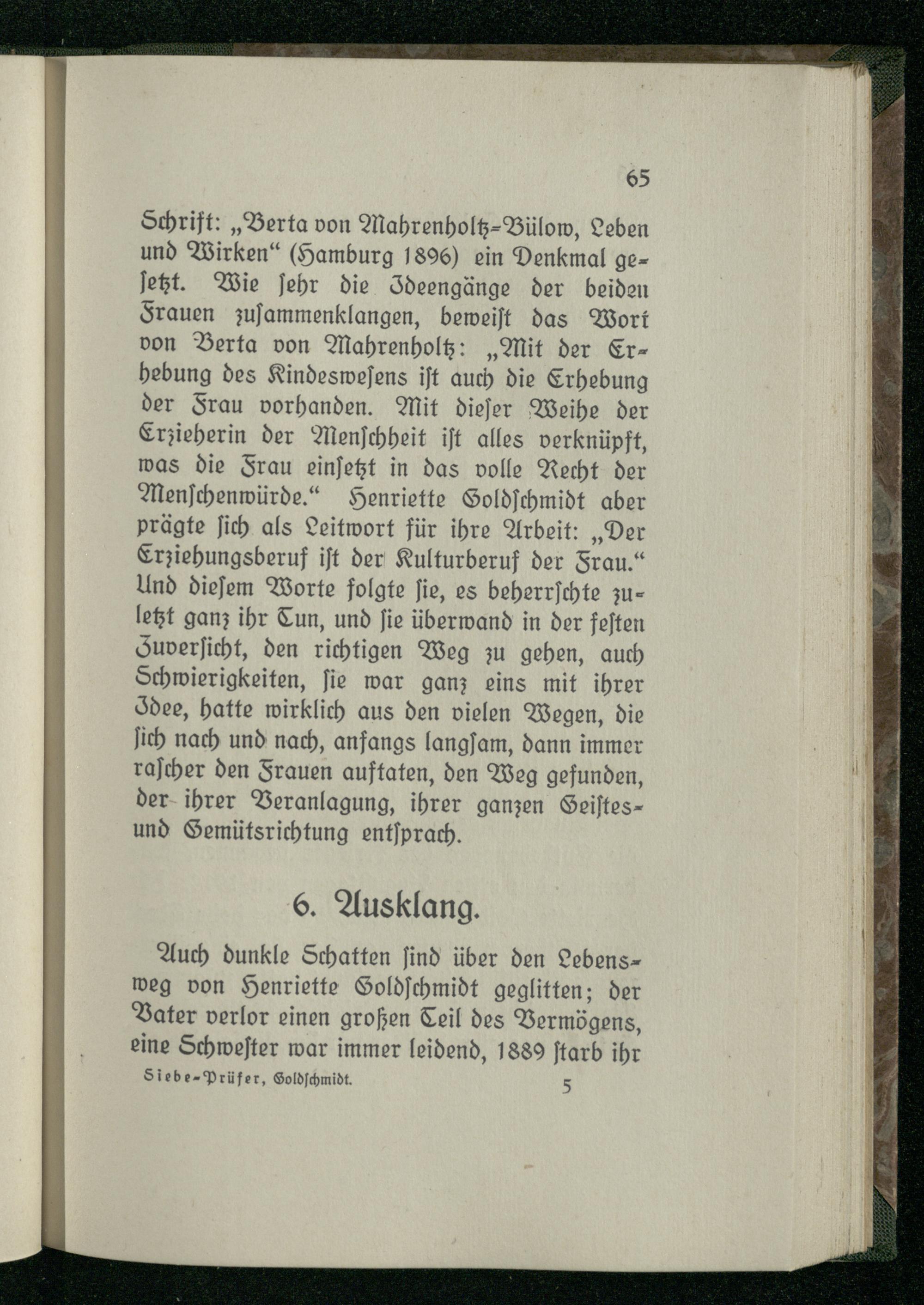 Henriette Goldschmidt : ihr Leben und ihr Schaffen / dargest. von Josephine Siebe und Johannes Prüfer